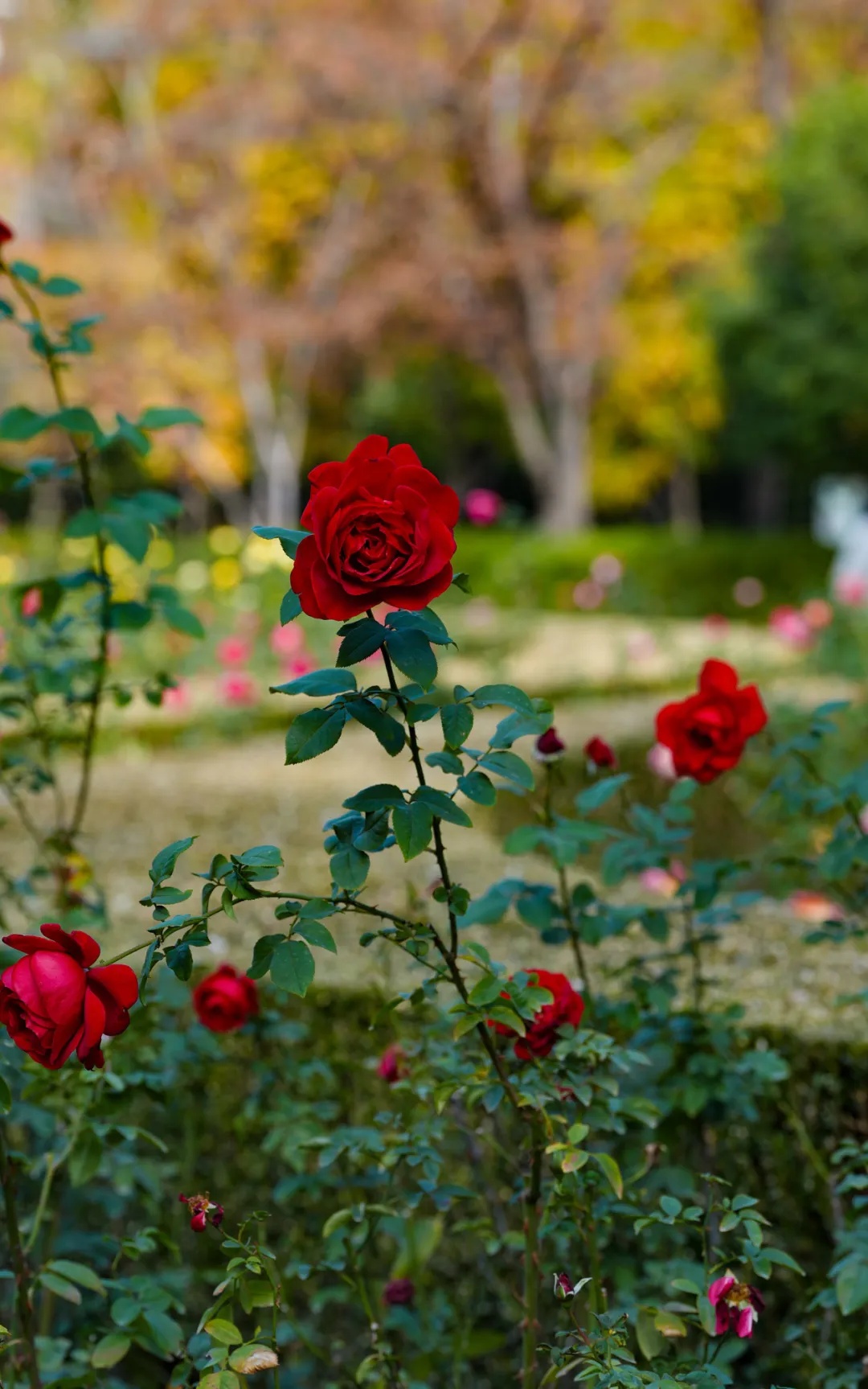 草坪边,晚秋的玫瑰还未谢尽,