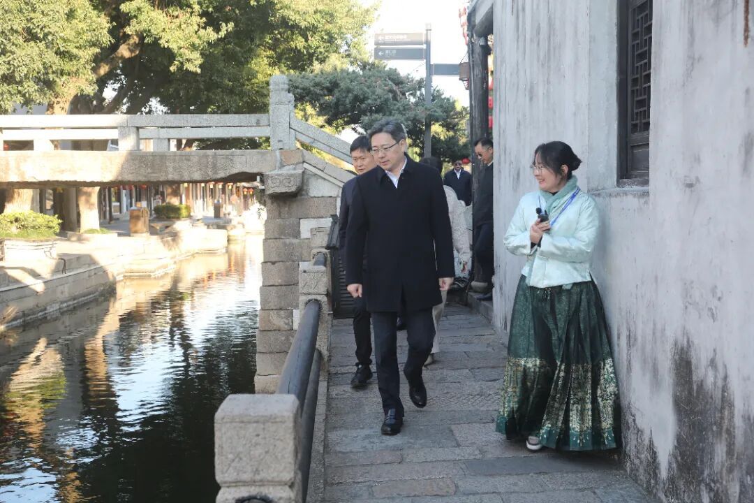 在西塘古镇,考察组实地察看明清古建筑保护、非遗传承及文旅融合发展成果。金晓明强调,青浦与嘉善同属江南水乡,文化同源、生态相依,要以长三角示范区建设为契机,学习西塘在文化遗产保护与旅游开发平衡上的成功实践,深化两地文旅资源互联互通,共同打造长三角文旅融合新高地。青浦要立足长三角示范区核心区定位,主动联动吴江、嘉善,持续强化战略协同、政策协同、工作协同,在科创协同、文旅共兴、生态共治等领域探索更多跨区域合作新路径,以三地一体化发展的实际成效,为长三角生态绿色一体化发展示范区建设注入更强动力,为全国区域协调发展提供可复制、可推广的经验。
