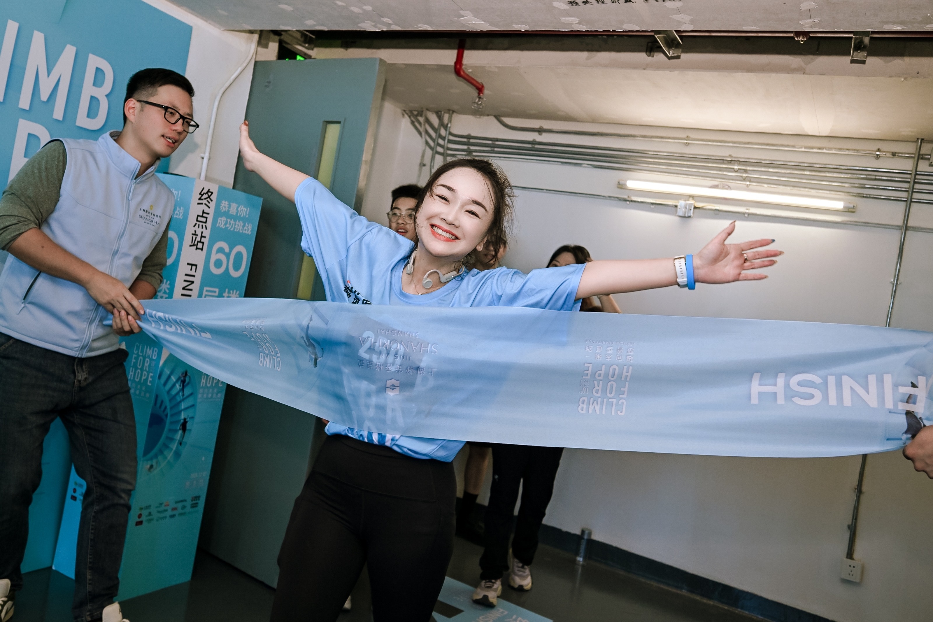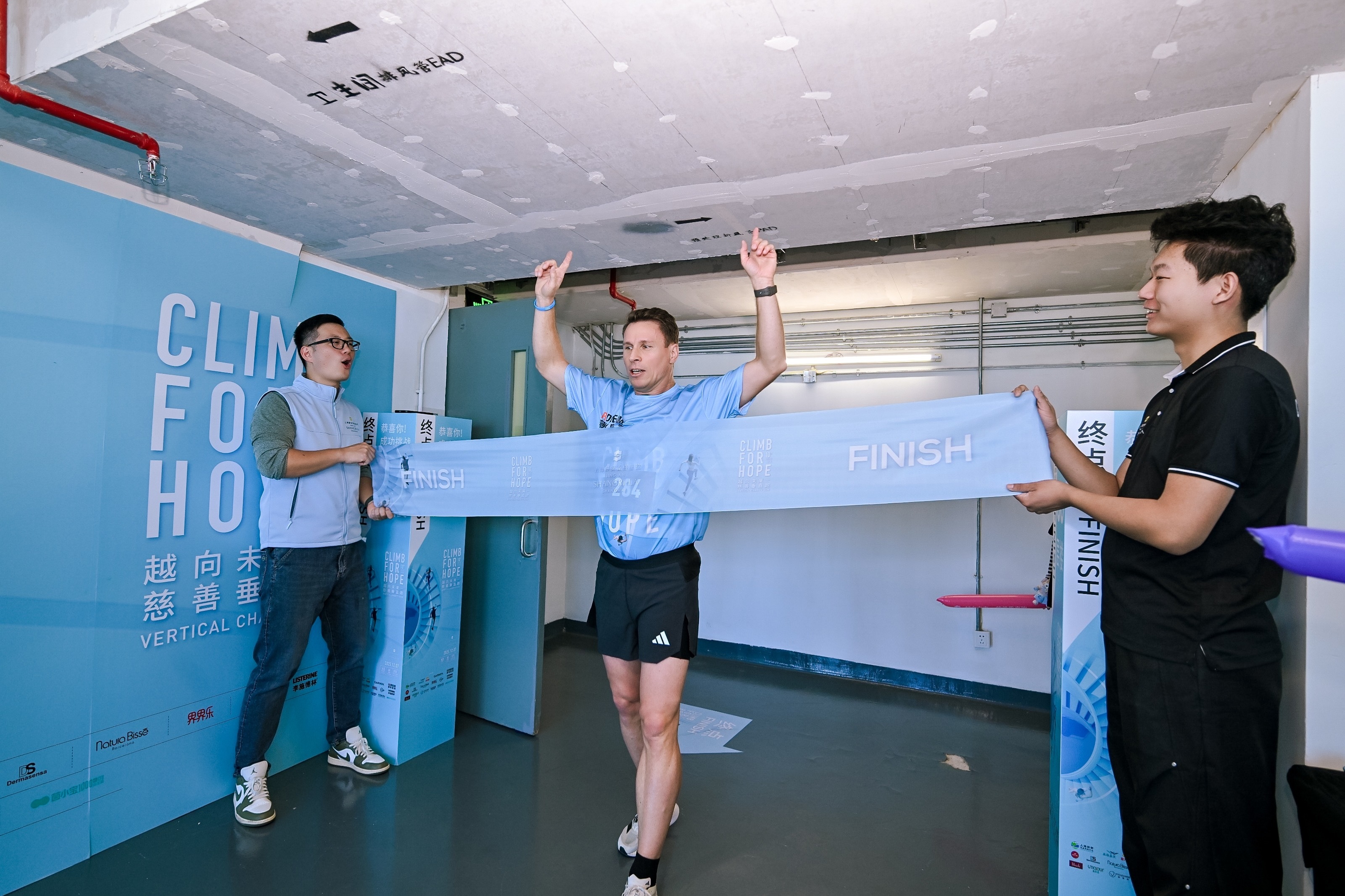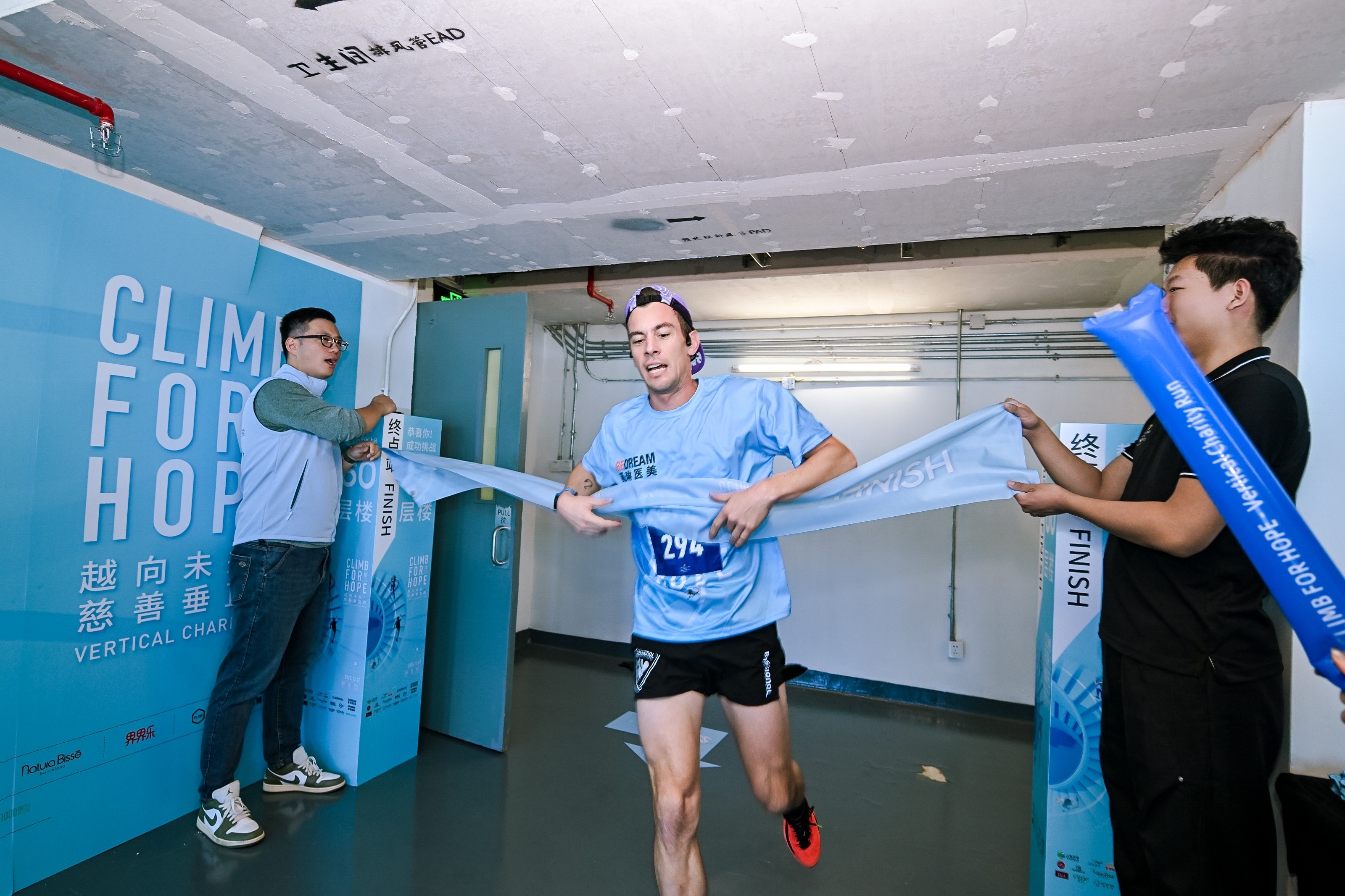 来自法国的Morgan作为本次慈善跑第一位成功登顶的选手,以9分56秒的成绩冲线。