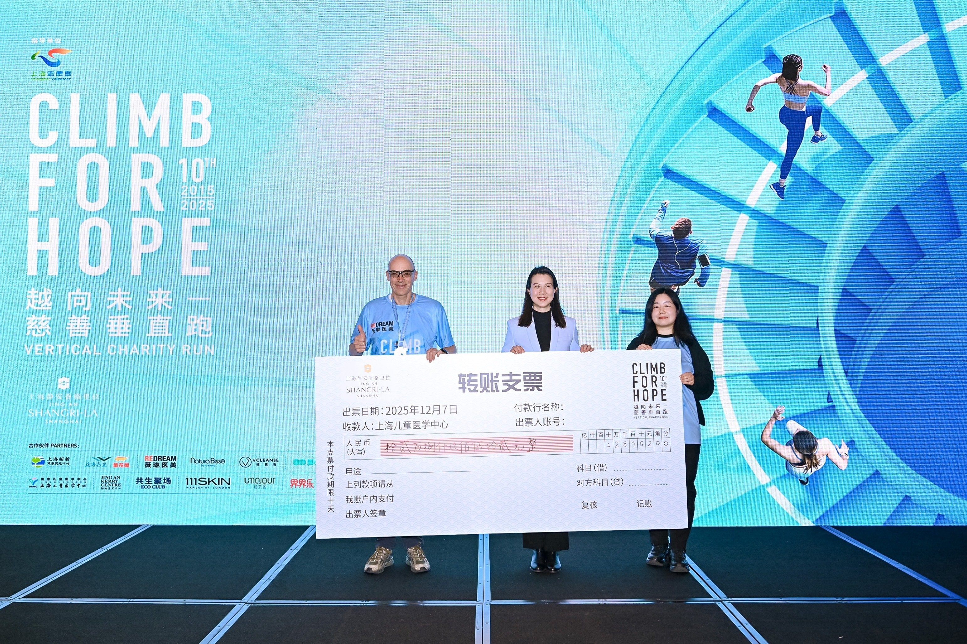 此次“越向未来”慈善垂直跑活动由上海静安香格里拉携手上海拓新健康促进中心举办,由益海嘉里金龙鱼、薇琳医美、静安嘉里中心等企业支持,旨在提倡健康、积极向上的生活方式,并在健康运动的同时心系慈善公益,为儿童健康医疗事业出一份力。此次收到的报名费共计人民币128952元,将全数捐赠给上海交通大学医学院附属上海儿童医学中心,用于病童的医疗救治。