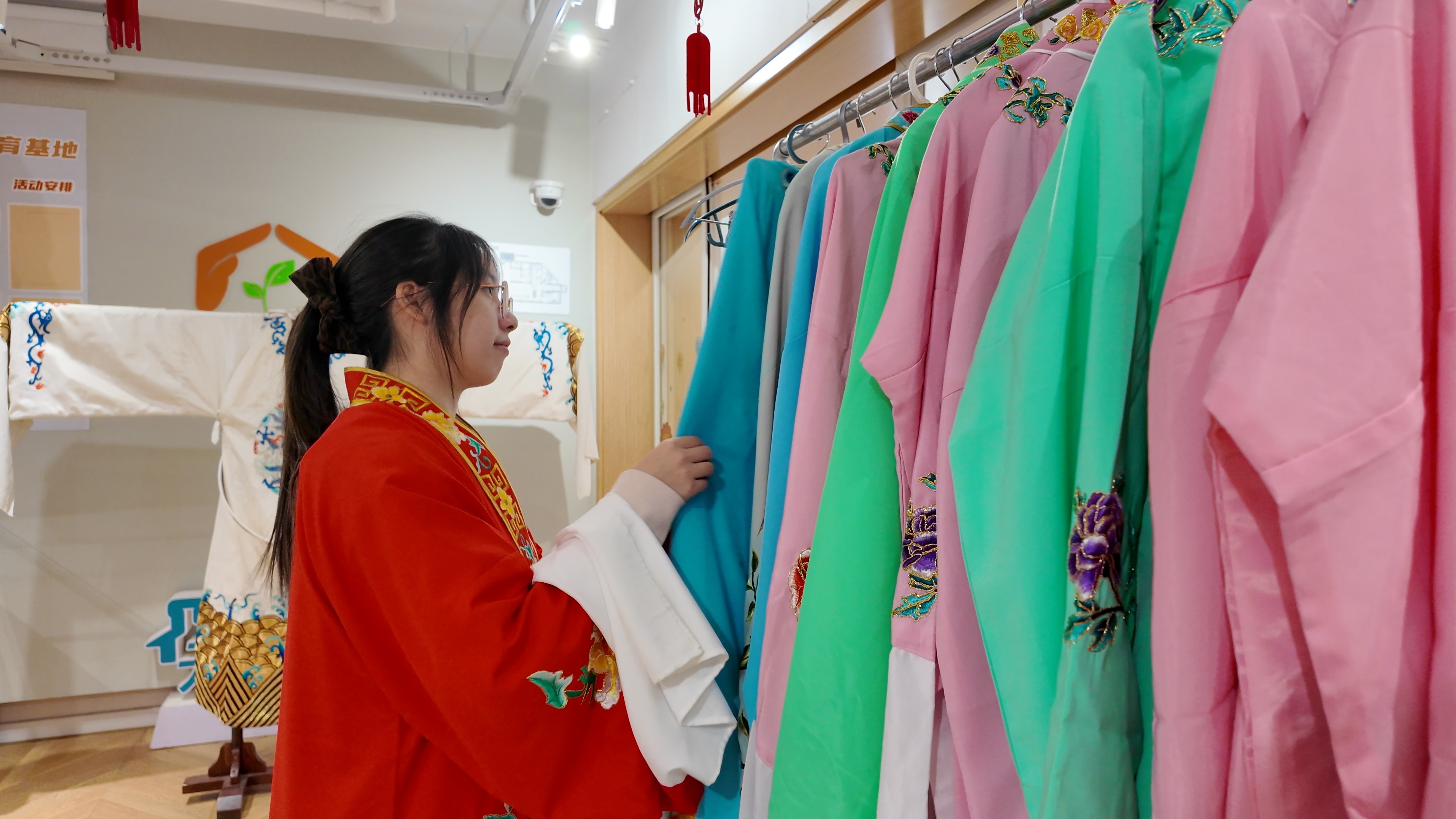 “我觉得还挺新鲜的。”小乔被鼓励着穿上戏服,便好像真的“进入”了越剧的世界,“身体就不由自主地想要模仿越剧老师们的动作,甚至想学一学他们的腔调。”此刻,传统文化的魅力变成了一种可以亲身感知的、充满仪式感的美。