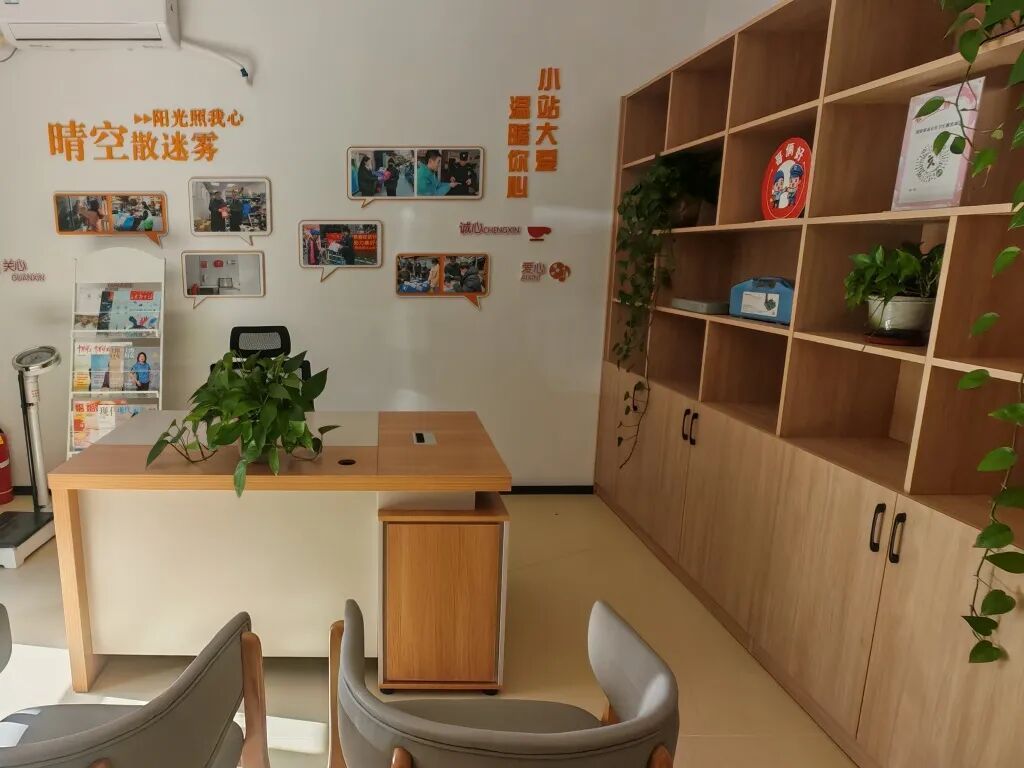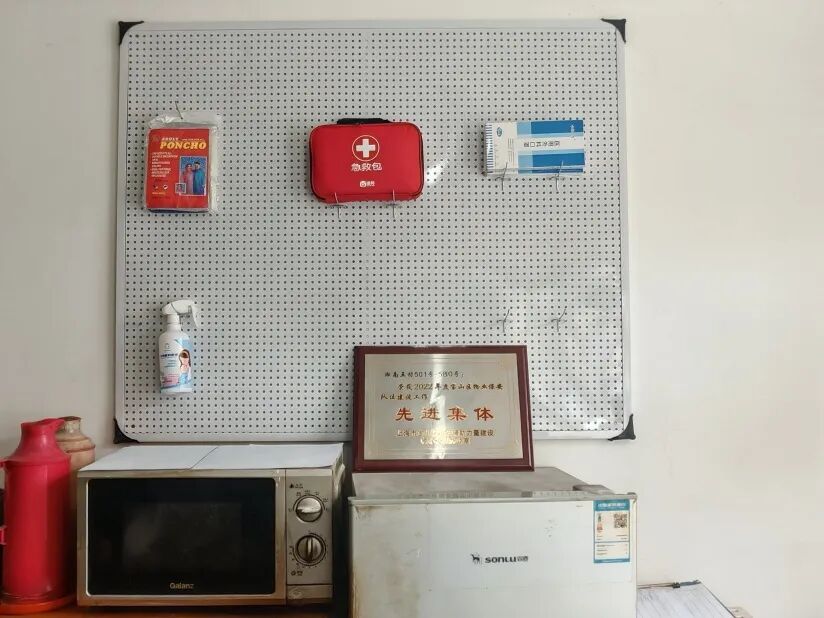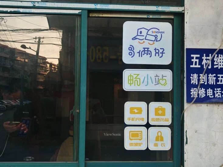 五村二居“畅小站”内部空间紧凑但功能齐全,处处体现贴心关怀。小站配备多接口充电器的应急充电区,可满足手机、充电宝等设备快充需求;急救药箱定期补充消毒棉片、创可贴等常用药品,并附带使用说明;“吾爱”休憩室设有舒适座椅、绿植和温馨提示,为骑手小哥和保安大哥提供安静的歇脚空间;便民柜内整齐收纳应急雨衣、打气筒,取用方便;冷热净水全年供应,冰箱和微波炉配套齐全,饭菜加热、取水饮用一步解决。休憩室旁还设置了快递临时堆放点,有效缓解小区高峰时段小包裹无处放的难题。小小空间,集成了充电、补水、用餐、休息、应急等多项实用功能,让奔波的小哥们感受到社区的温度。
