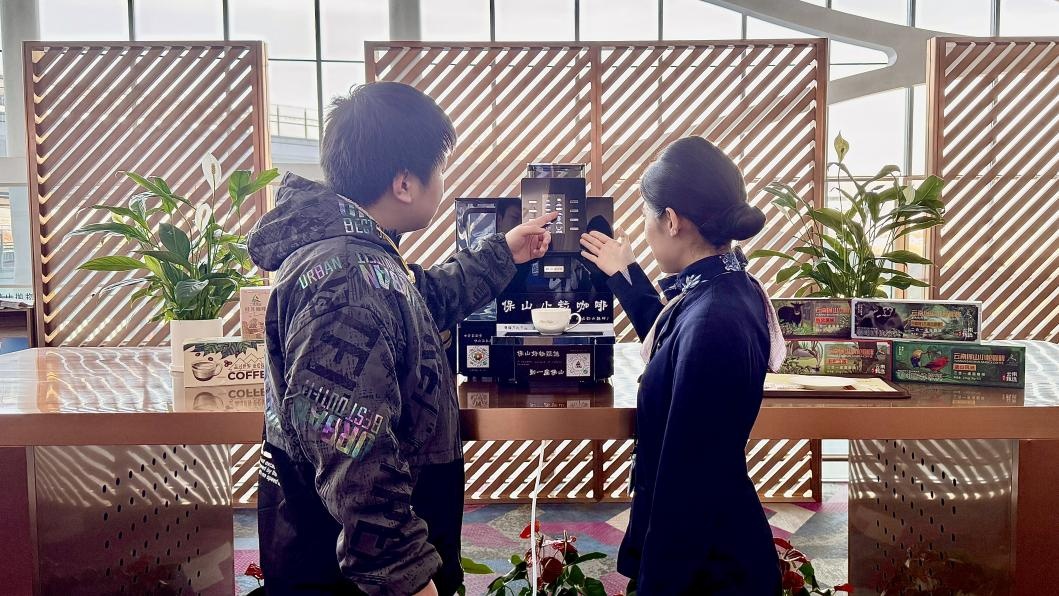 在北京大兴国际机场的东航高端值机区,藏着一份冬季专属的暖心惊喜——特设“一座保山”咖啡品鉴区。选用风味醇厚的云南保山小粒咖啡豆,现场手工现冲,还贴心提供DIY调配体验,让旅客自由搭配喜爱的口感。
