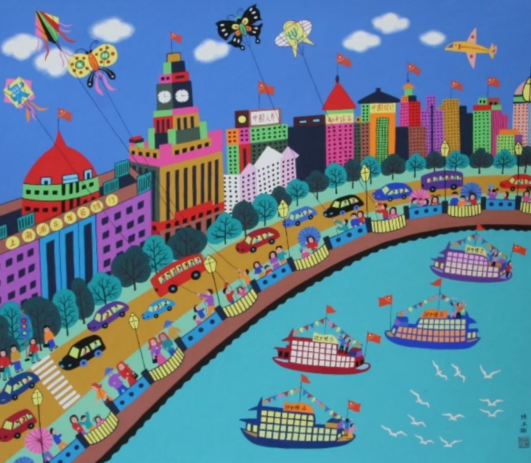 金山农民画:金山农民画由江南民间美术土壤中滋生,汲取刺绣、剪纸、灶壁画等传统艺术,把水乡清新而芬芳的泥土风韵与现代农村丰富的生活气息融为一体,表现农民精神的时代意义。独特的艺术思维、浓厚的生活气息、稚拙的构图色彩,成为金山乡村文化的重要组成部分,它释放的热情和动力,传递着乡土之美、民俗之雅、文化之韵、人情之暖,推动着乡村文化振兴建设。