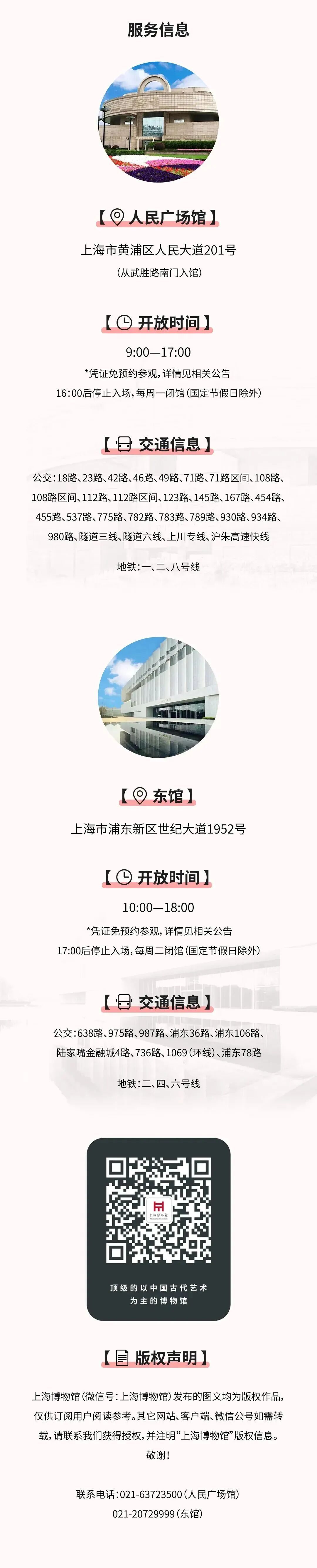 2.活动当日18:30起,观众凭本人手机预约码、本人有效身份证,由上海博物馆东馆(世纪大道1952号)B1东入口处通过核验、安检依次进入会场。