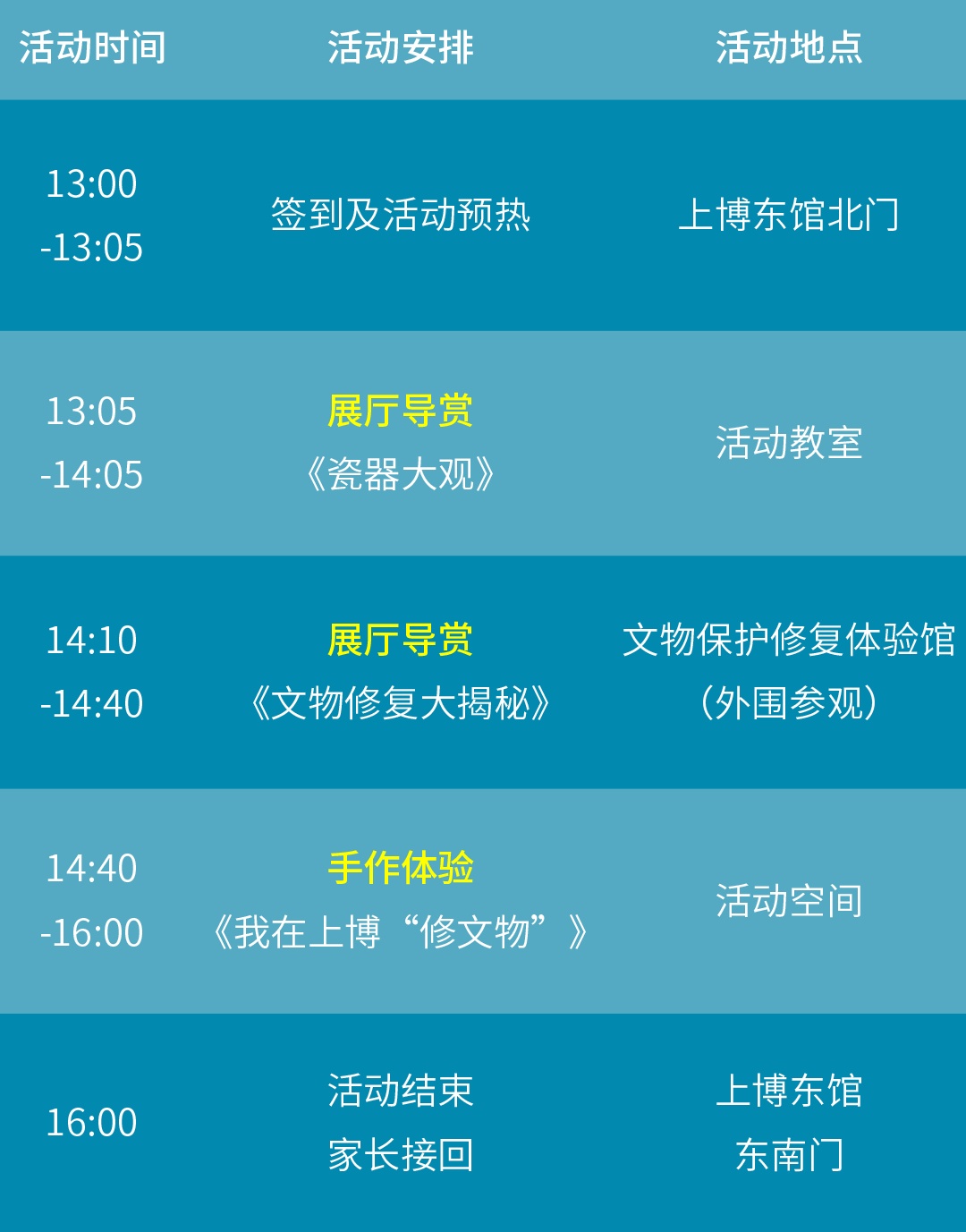 所有课程集合地点均为上海博物馆东馆正门前,由现场工作人员引导进入博物馆。