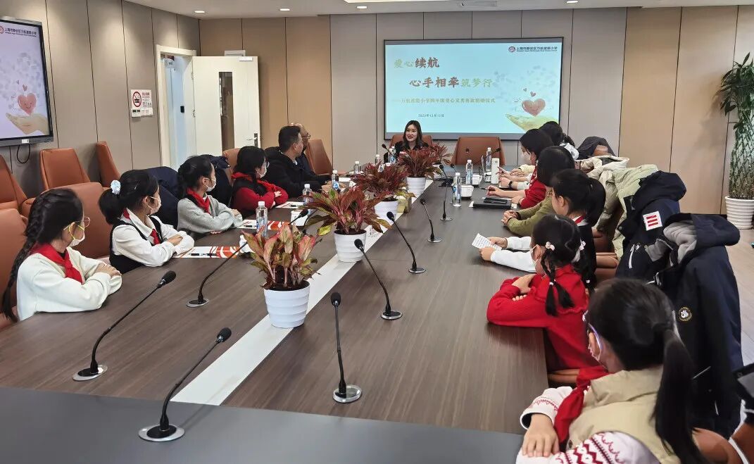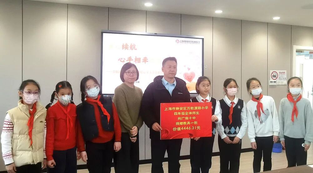 爱心不分大小,责任无关年龄。12月15日,万航渡路小学举行“爱心续航,心手相牵筑梦行”四年级爱心义卖善款捐赠仪式。当学生代表将用善款购买的30个U盘、30个翻页笔、30个无线扩音设备等教具交到广南县第十中学校教科室主任的手中,这份“心手相牵”的爱与温暖将跨越山海,照亮两地学生的追梦之路。