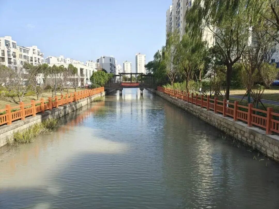 高东镇新高苑三期内新开河呈东西走向,西起金京路,东接赵家沟,总长530米,河道全线贯穿小区内部。
