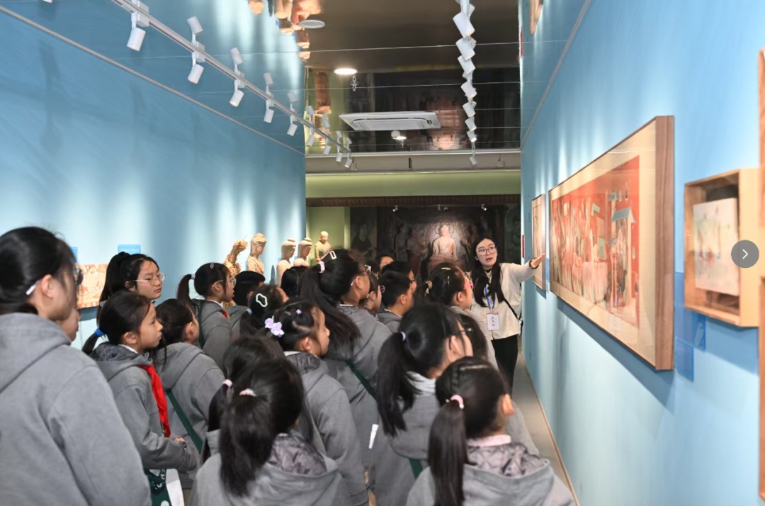 “现场学习比课本更生动,让我看到了和课本上‘不一样’的莫高窟。尤其是听老师讲解了泥塑从粗坯到成品的完整过程,我了解到要经过搭建骨架、上泥堆形、加深塑造,最后赋彩的复杂步骤,感到很震撼。”五年级学生周雨桐说。