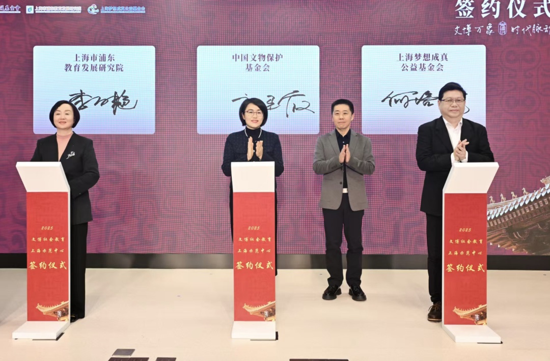 启动仪式上,中国文物保护基金会、上海梦想成真公益基金会、上海市浦东教育发展研究院共同签署“合作框架协议”,三方将合力创建多元化文博资源注入青少年教育的新模式。