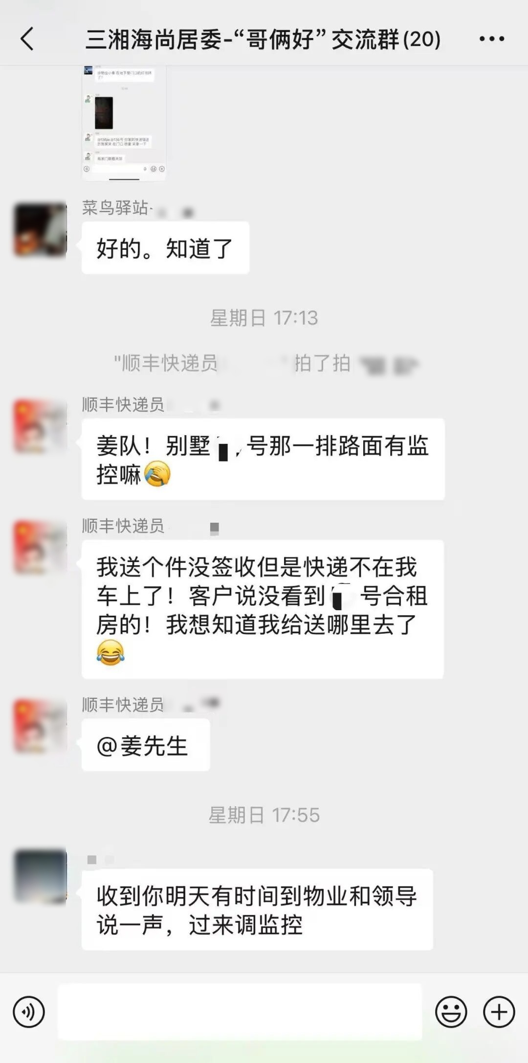 三湘海尚的“哥俩好”微信群,以其“秒级响应”的高效协作,成为社区服务的“加速器”。近日,保安在业主群发现快递错放至25号楼(实为35号楼包裹),立即在群内@快递员,几分钟便完成了纠错。快递员在配送中发现别墅区133号单元门闭门器故障,也在群内及时上报,物业当日下午即完成修复。这种线上即时沟通、线下无缝衔接的模式,让“流动哨兵”成为社区服务的“贴心人”,也让居民的“烦心事”变成了“顺心事”。