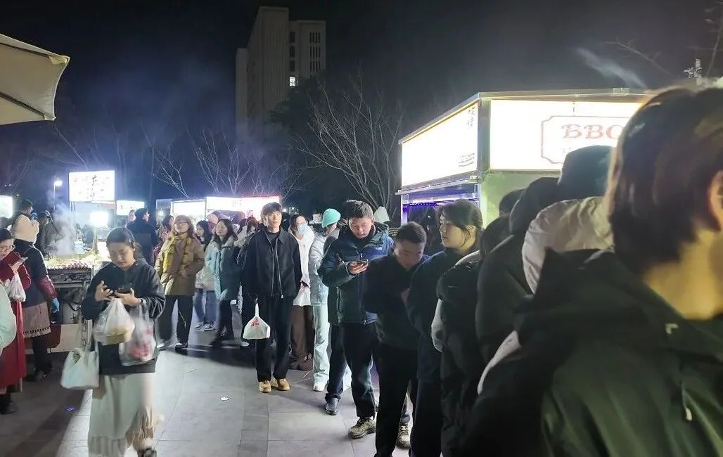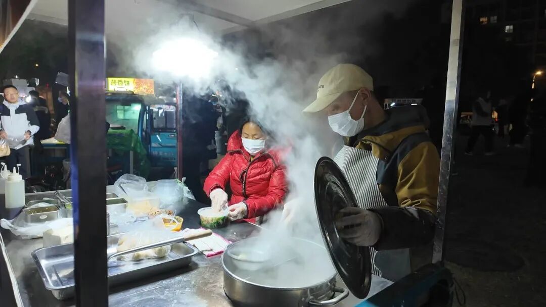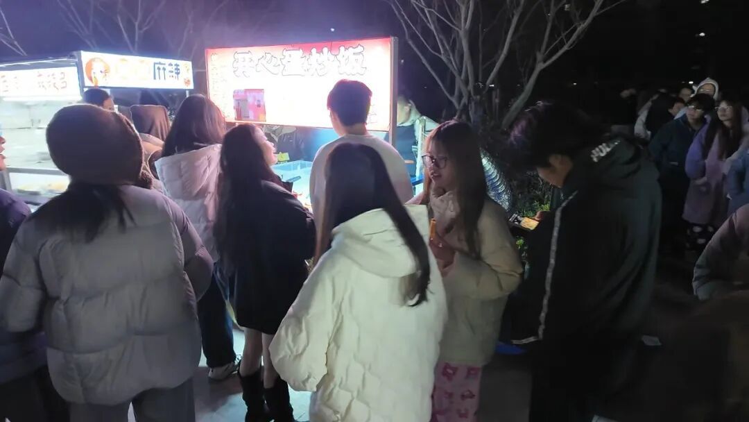 食客王同学说:“第一眼就看到了排队比较少的章鱼小丸子,也就排了五六分钟。这里店铺很多,小吃种类很多样。”食客段同学则记者介绍:“我买了拌土豆、牛肉汤,还有虎皮大饼,非常好吃。晚上肚子饿了,点外卖也不知道吃什么,就可以出来逛逛。”