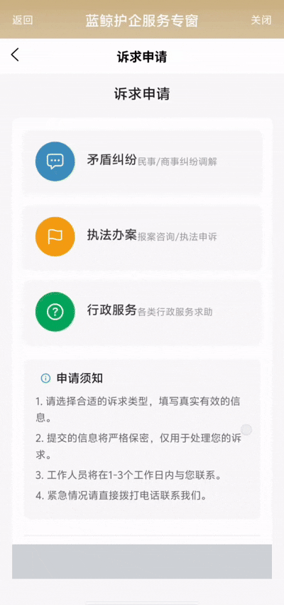 “蓝鲸”护企服务专窗,是上海市公安局牵头建设的一站式线上便企服务平台,企业可通过专窗一键移交纠纷调解、执法申诉、事项办理等需求,由专窗直接流转开展后续办理。