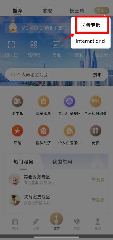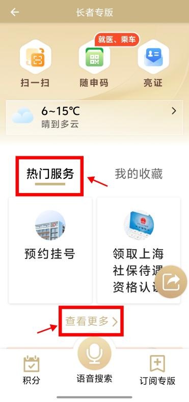(3)“热门服务”一栏下方,点击“查看更多”,下滑点击“老年教育”,跳转“老年教育”首页