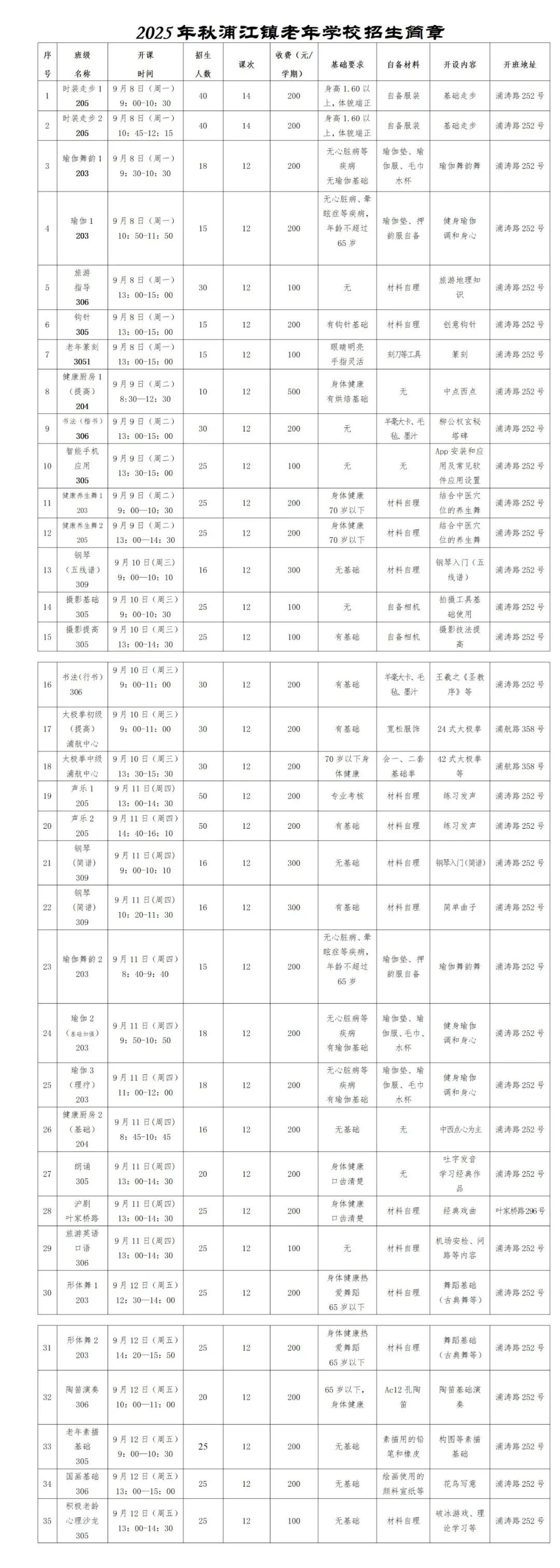 地址:浦江镇社区(老年)学校(浦涛路252号)