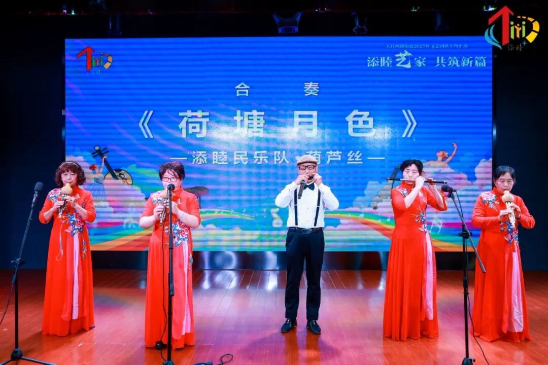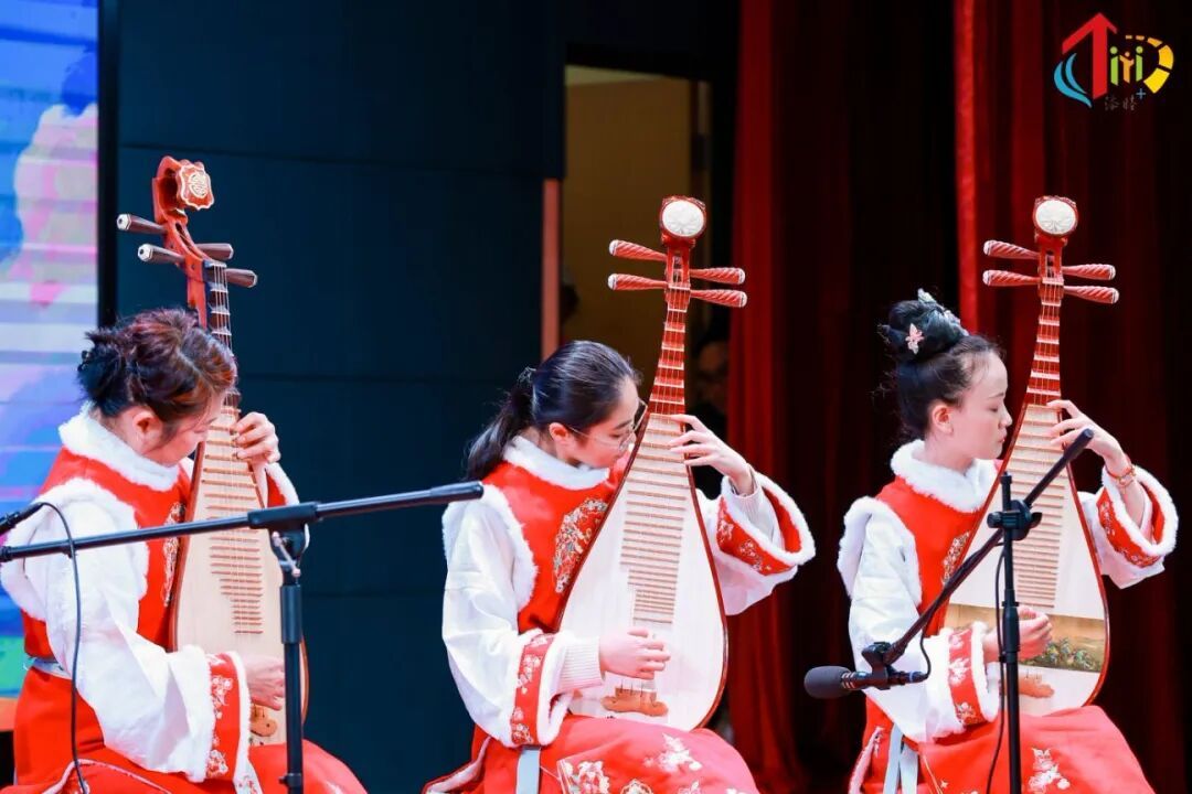 民乐表演更是成为汇演的一大亮点。添睦民乐队用葫芦丝奏出《荷塘月色》,悠扬旋律勾勒出江南夏夜的静谧浪漫;古筝《渔舟唱晚》,意境悠远,琴声起落间,一幅夕阳西下、渔舟归航的唯美画卷徐徐展开;琵琶合奏《铃儿响叮当》,巧妙融合中西元素,将经典旋律演绎得别有韵味,奏响冬日里的欢乐乐章。