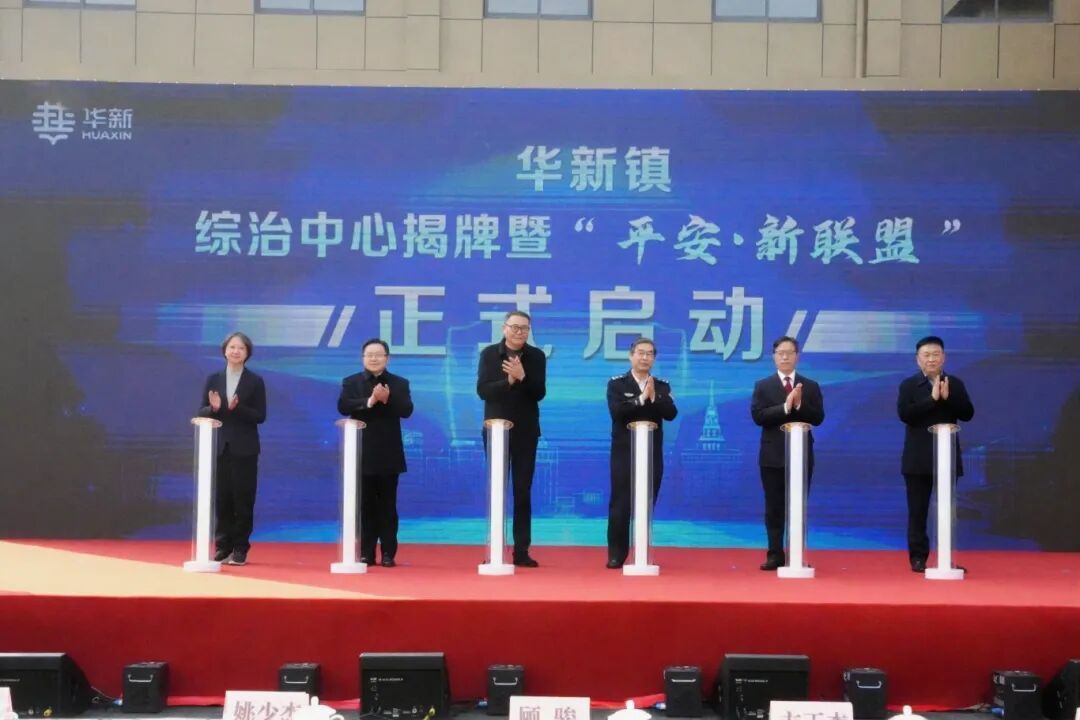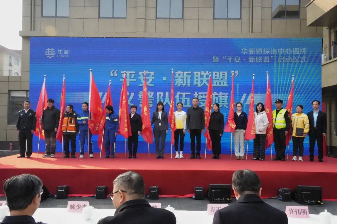 启动仪式上,顾骏和姚少杰为华新镇综治中心揭牌。现场启动了“平安·新联盟”,并为“平安·新联盟”义警队伍授旗。此外,现场还播放了“平安·新联盟”建设成果短视频,与会人员直观感受到华新镇综治中心建设的高标准、高起点和“平安·新联盟”的蓬勃朝气。
