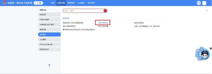 登录电子税务局(网址:http://etax.shanghai.chinatax.gov.cn)—我要办税—税收减免—税收减免核准