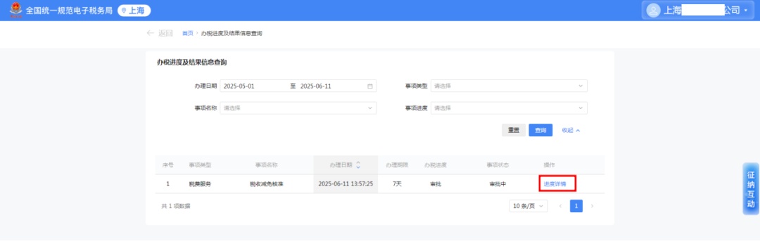 纳税人可点击“进度详情”查看事项具体审批进度。