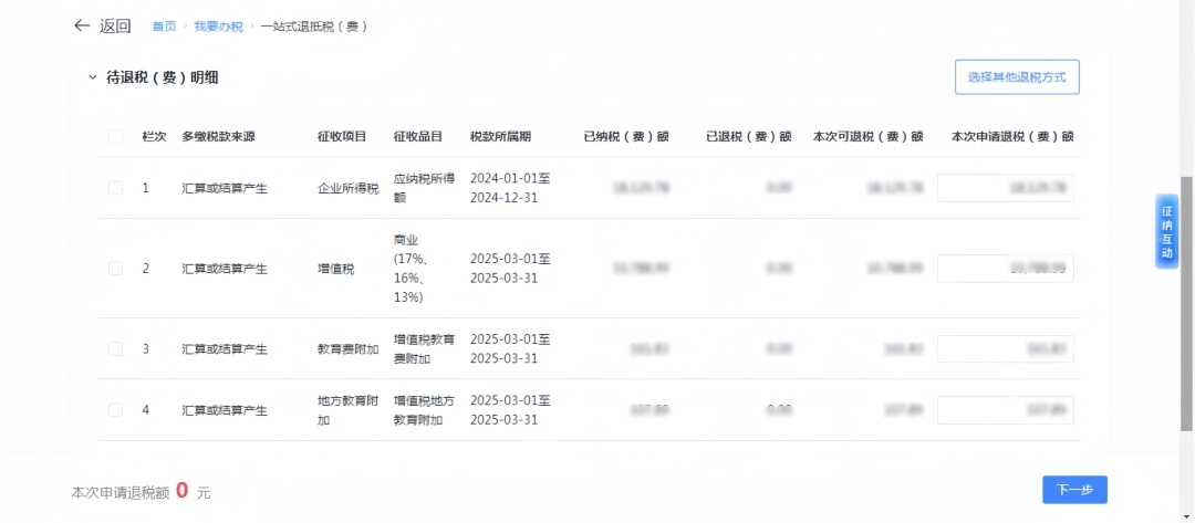1.进入“一站式退抵税(费)”模块