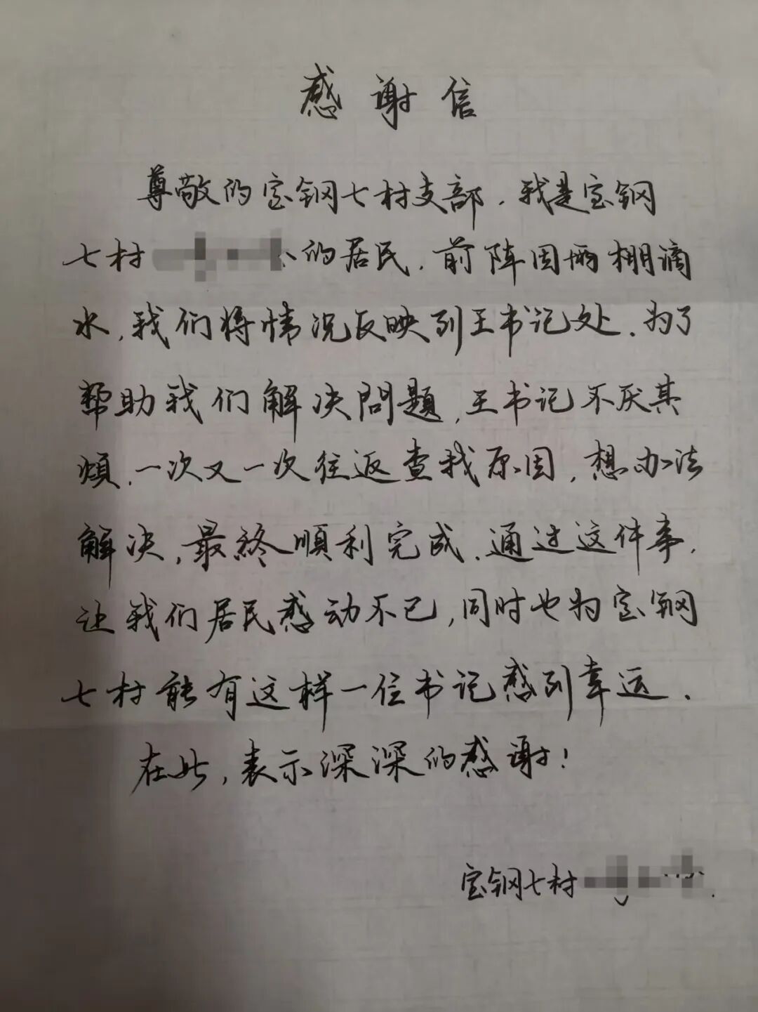 业主特意写下感谢信,字里行间满是对社区尽职尽责、为民解忧的赞赏与肯定。