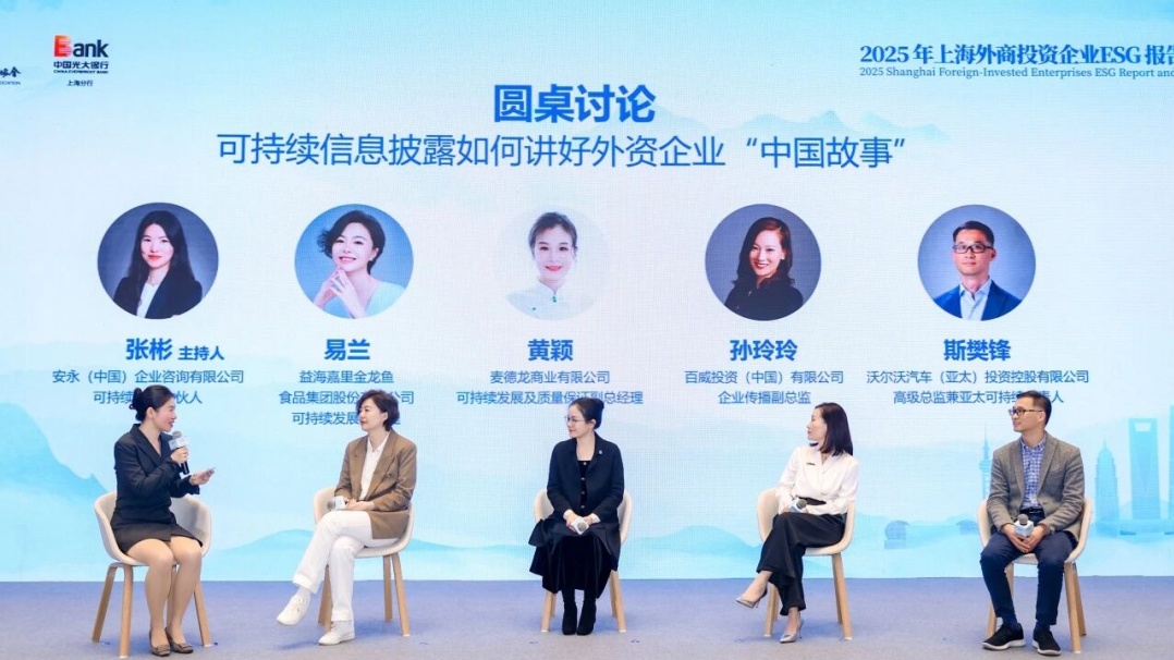 会议中,开展“2025年度上海外商投资企业ESG报告解析”“可持续信息披露的国际准则与国内指引的协同”等主旨演讲。圆桌讨论环节,嘉宾围绕“可持续信息披露如何讲好外资企业的‘中国故事’” 话题展开讨论。
