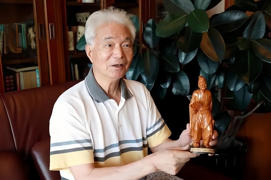 张戈手拿济公木雕