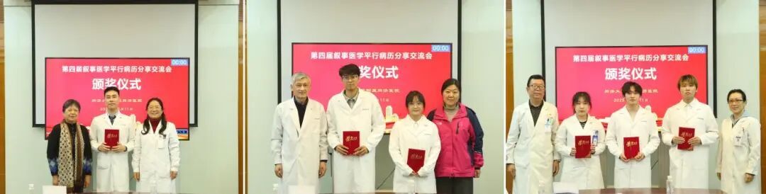 分享交流过程中,评委老师们对平行病历进行逐一点评并提出完善建议,强调医生不仅把患者当作一个患病个体,更是有着社会特点与丰富情感的“人”。叙事医学搭建患者这座孤岛与医护之间的桥梁,是每个医学生的必修课。作为医学生,应通过与患者的充分交流,全面了解眼前的患者,不仅要准确诊断其病症,更要用心陪伴、尽心医治。随后,花艳与各位专家评委为获奖学生颁发荣誉证书,并送上诚挚祝贺。本届活动中,获得一等奖的为2023级四证研究生曾子煊,二等奖为2022级本科生杨奕涵、张挥,三等奖为2021级本科生杨薇妮、2022级本科生刘涵林、张海峰。各位老师鼓励获奖同学继续秉持医者初心,勇毅前行。