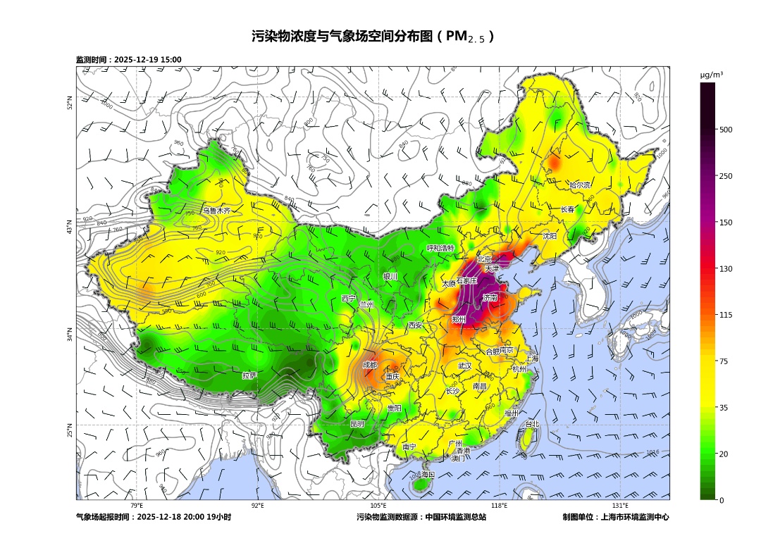 19日15时PM2.5浓度空间分布