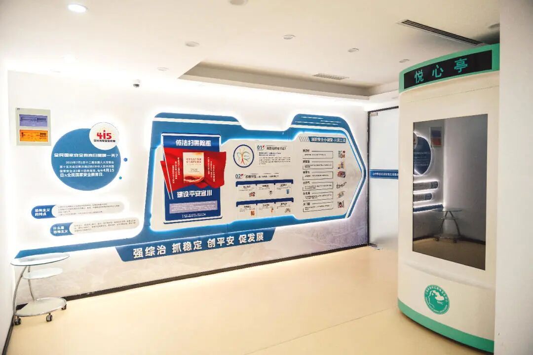 第四大板块为多功能区,特设平安志愿者之家、人民建议征集和临时法治观察点、多功能厅,定期举办反诈宣传、心理培训等活动,为辖区老百姓提供舒适的平安志愿服务技能培训基地和交流休憩场所。