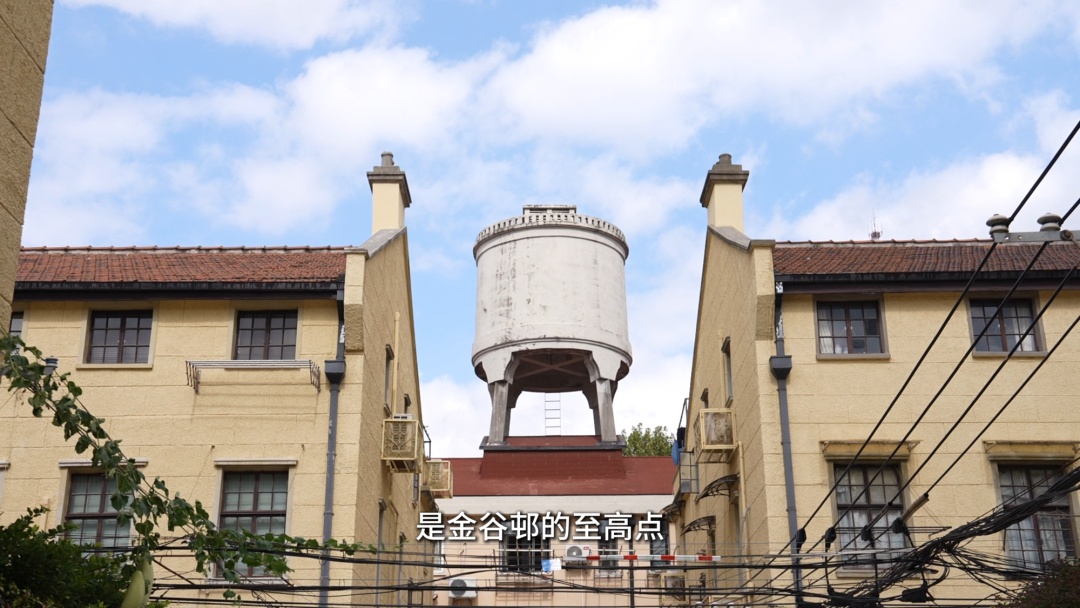 我们一路走,在弄堂的尽头,那座高高耸立的水塔,是金谷邨的至高点,它就像个守护神一样立在那儿,也是这条弄堂里最独特的一景,随便一拍就是文艺大片。
