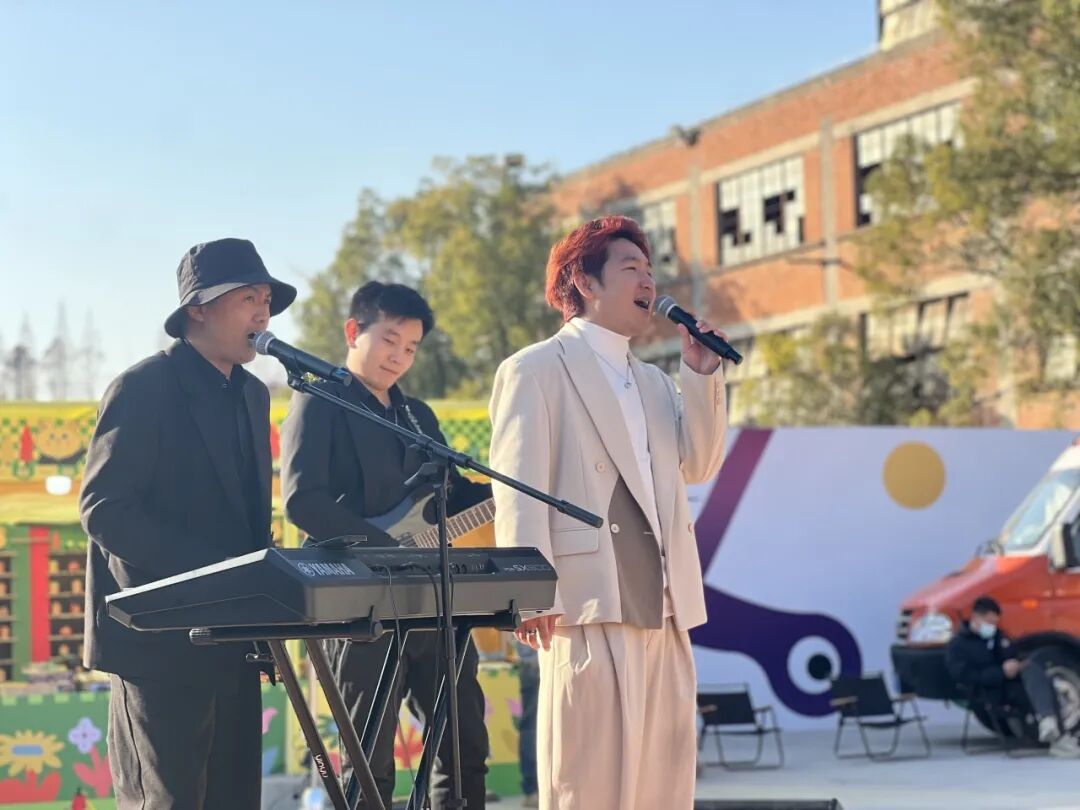 作为核心亮点之一,“音乐LIVE”单元每日在13:00至16:00间的四个整点准时开唱。舞台上,乐队演绎着《海阔天空》《彩虹》《告白气球》等脍炙人口的曲目,动人旋律随江风飘荡;舞台下,人们或驻足聆听,或围坐露营椅上“围炉煮茶”,一壶热茶、一曲歌声,便能疗愈整个午后。
