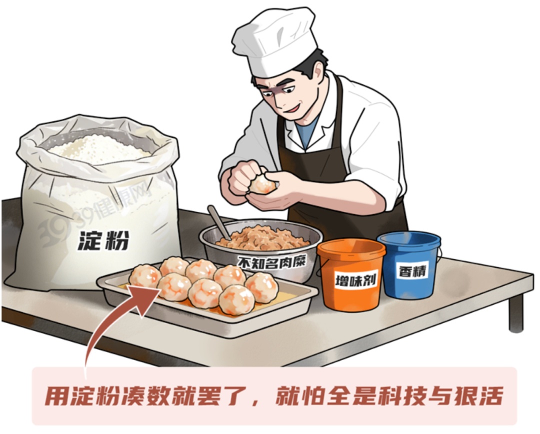 你买到的“牛肉丸”可能牛肉含量极低,“虾丸”里或许根本没有虾,全靠香精、淀粉和多种添加剂支撑风味和口感。