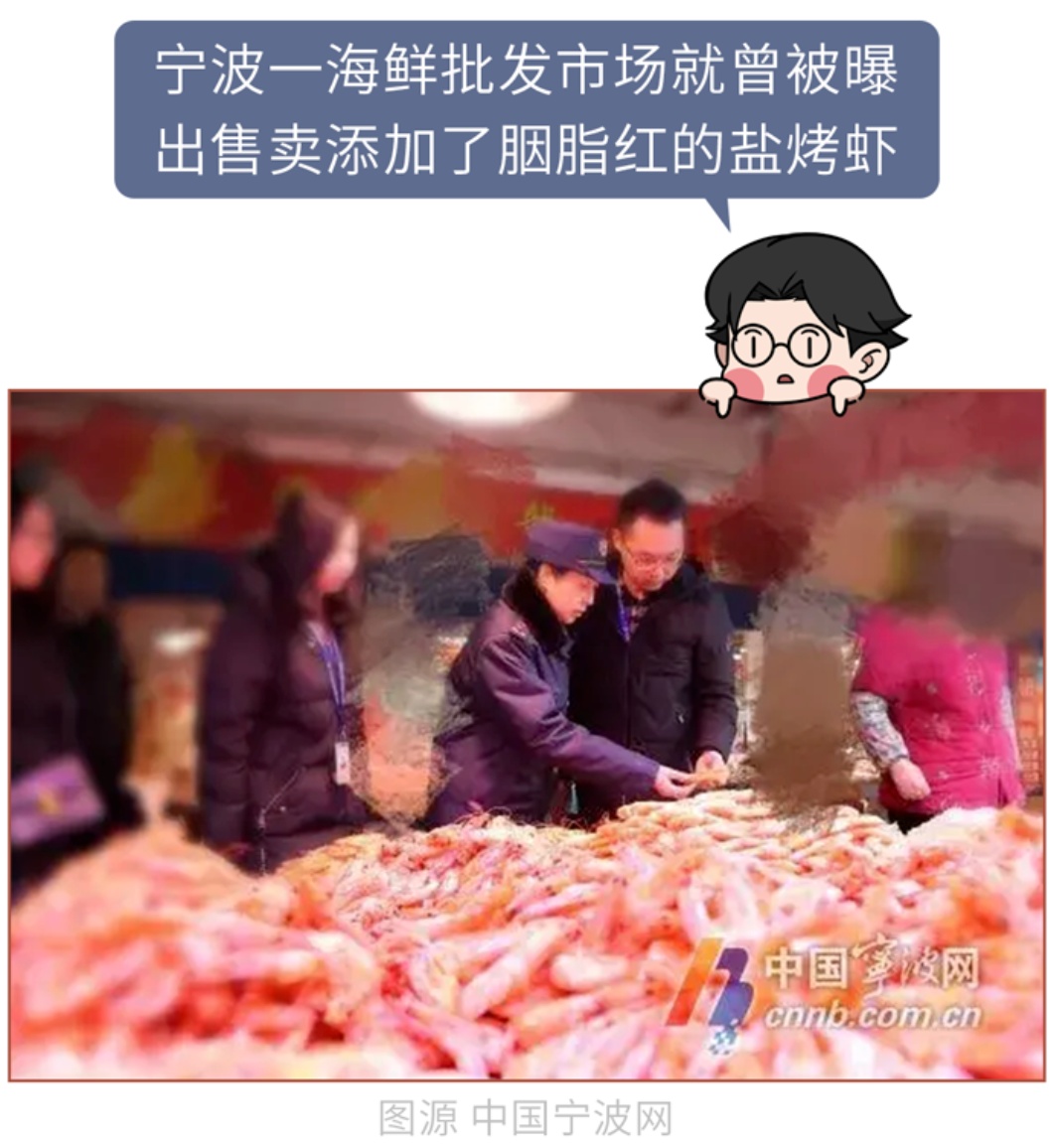 国家明令禁止将此类合成色素用于肉干、水产品等食品中。食用这类“染色虾”,不仅可能摄入违规添加剂,变质的虾肉本身产生的组胺和细菌(如沙门氏菌)还容易引起食物中毒,出现头晕、呕吐、腹泻、发烧等症状。