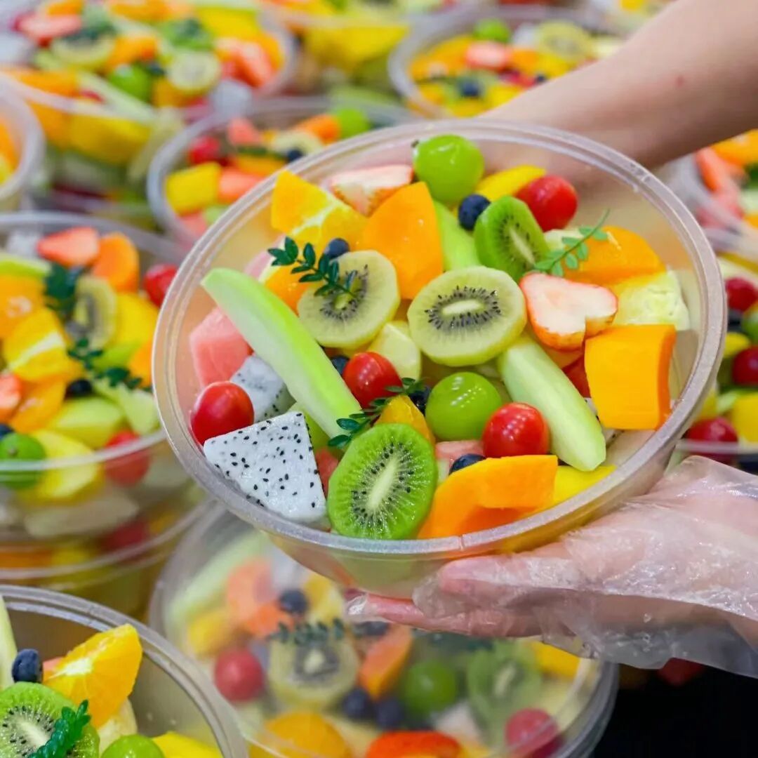 因此,水果最好买完整的,回家现切现吃。如果实在想买果切,请选择大型超市里包装规范、有明确生产日期和厂家信息的产品。大商超果切多由加工厂制作,对卫生要求严格,包装上通常会印有执行标准(GB31654-2021)、生产者信息和生产日期等,相对更有保障。