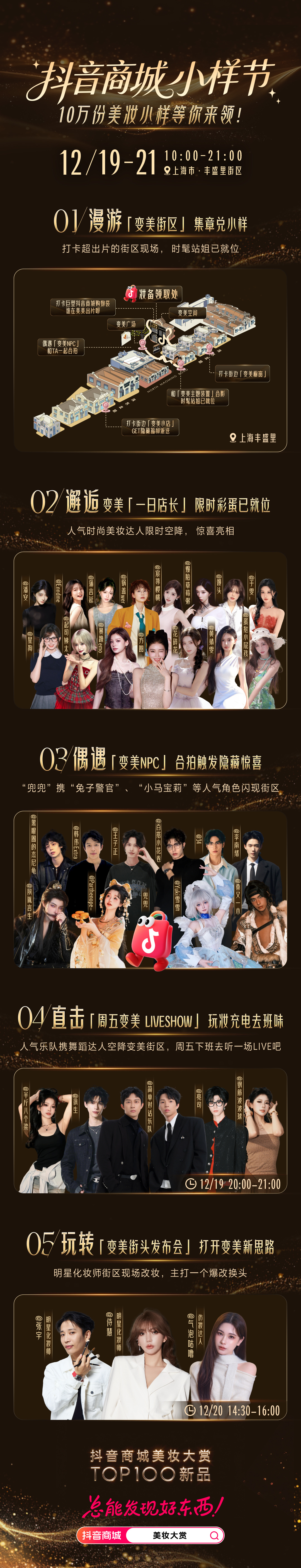 12月19日—21日,丰盛里化身美丽街区,携手抖音商城小样节邀请爱美的你,一起沉浸式打卡集章、试用和体验美妆及护理产品,让自己变得更美、更时髦。活动期间,现场还将送出10万份美妆产品小样,让美丽更加触手可及。