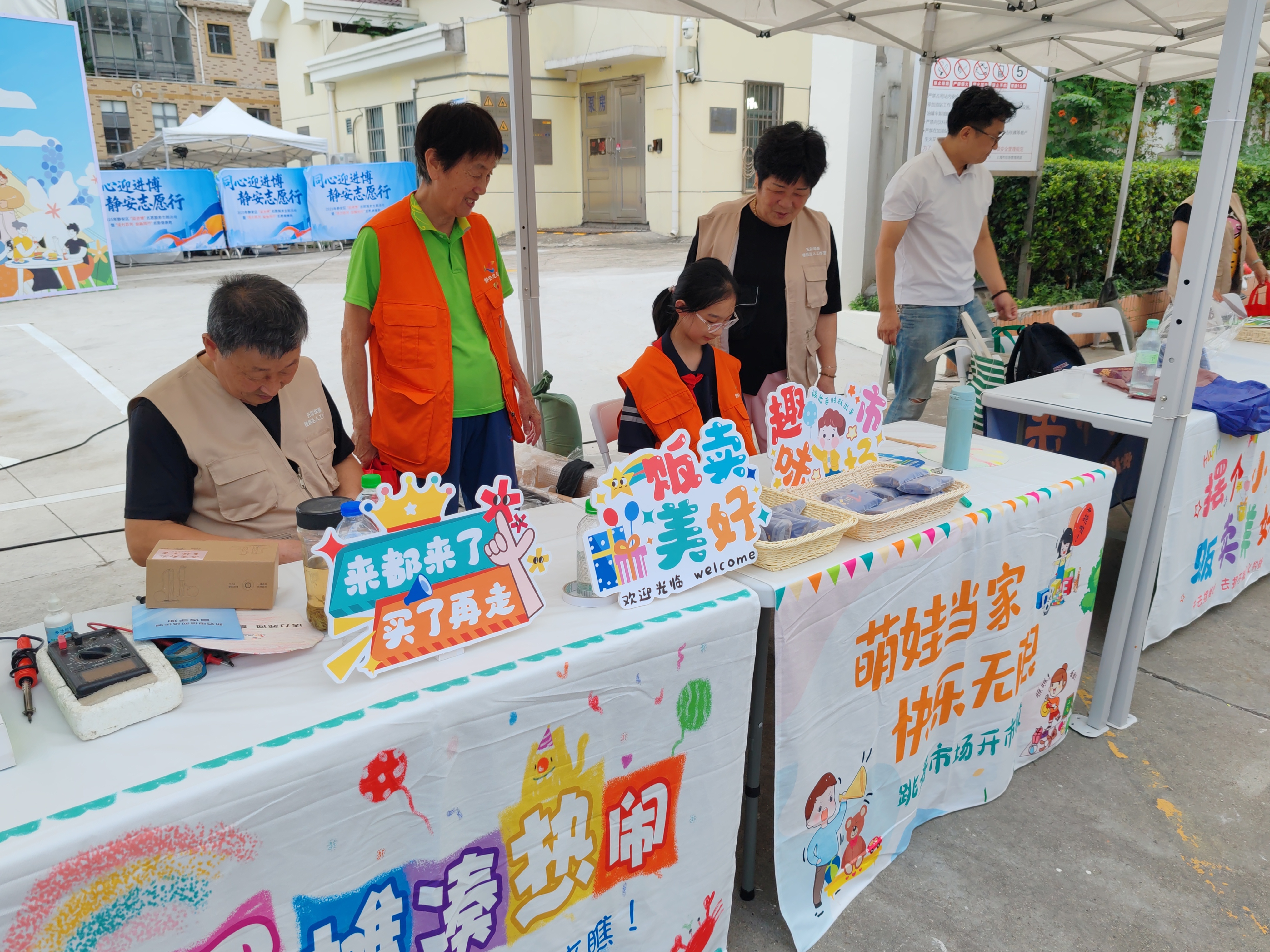 在志愿者队伍持续壮大、市集制度不断完善的基础上,华康社区邻里市集顺利开市,成为居民自主参与、资源共享的生动载体。市集上,居民主动认领摊位,将家中闲置物品拿来义卖,各类商品琳琅满目;小朋友们化身“小掌柜”,在跳蚤市场体验买卖乐趣,感受分享的快乐;达人工作室的叔叔阿姨们大显身手,磨刀、缝补、修眼镜、修小家电等公益服务一应俱全,吸引众多居民和周边白领人群排队等候;周边商铺的理发小哥也主动加入,为居民提供便捷理发服务。市集的成功举办,让社区内的闲置资源得到充分流动,让邻里距离在互动中不断拉近,社区的凝聚力和向心力显著增强。