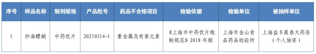 根据《药品管理法》《药品质量抽查检验管理办法》《药品抽样原则和程序》及《2025年上海市药品质量抽检工作计划》,2025年,区市场监管局开展药品质量监督抽检工作,现将结果公布如下: