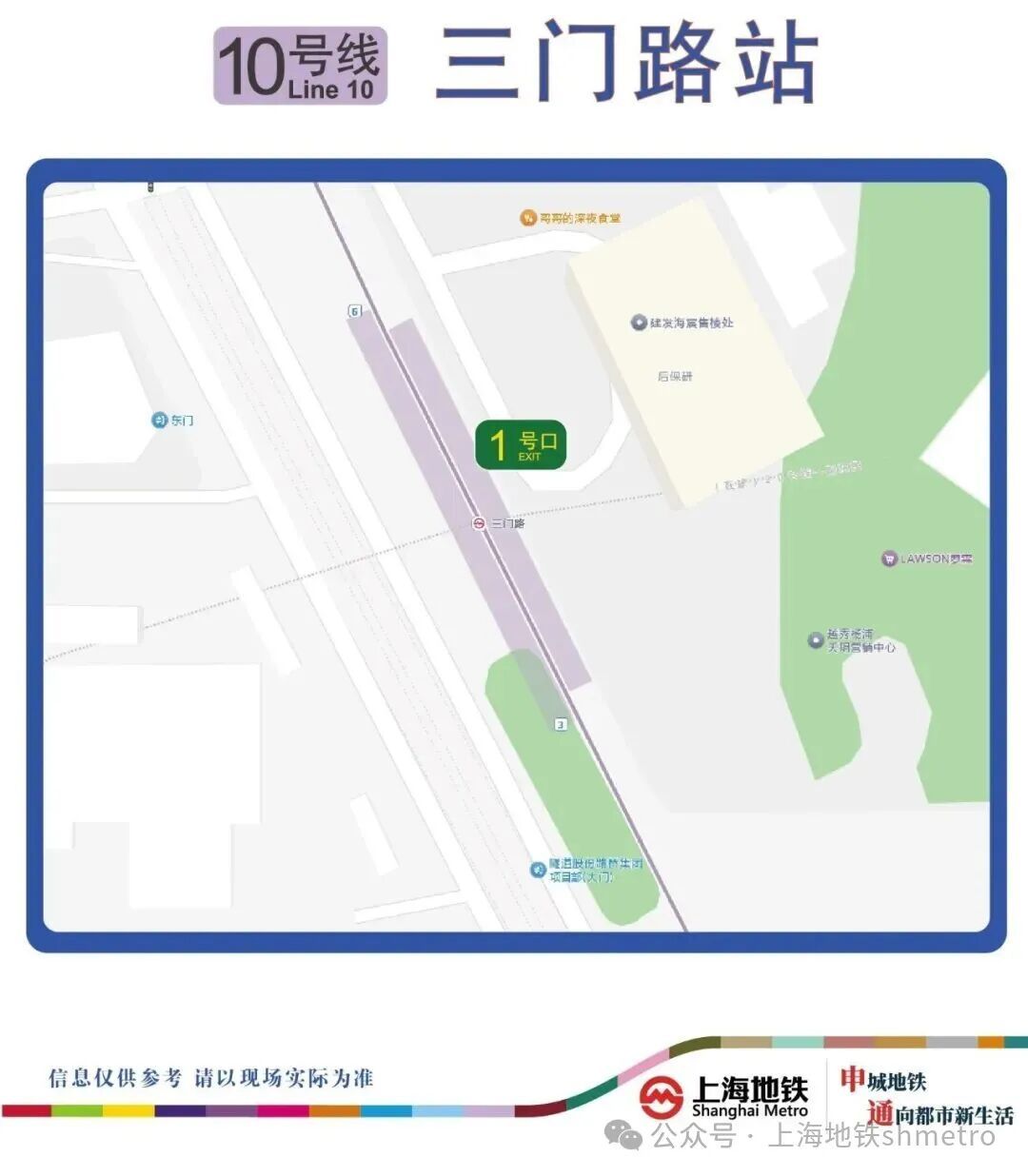 轨道交通10号线三门路站新建1号出入口于2025年12月15日开启。