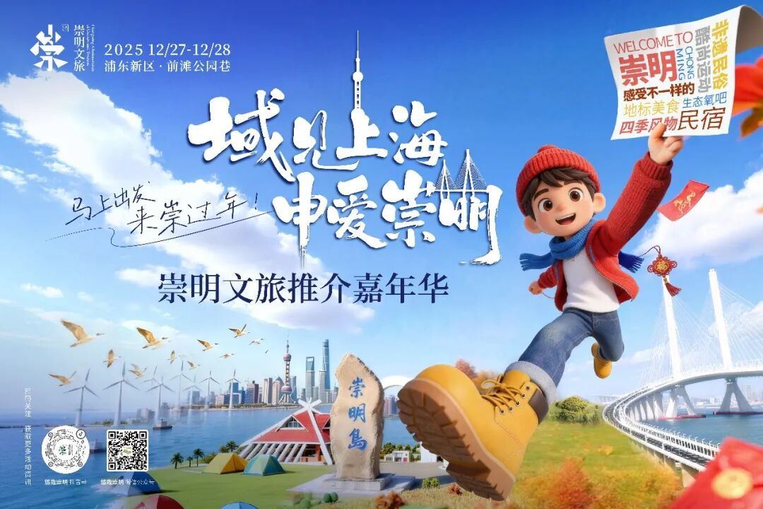 抢先剧透! “域见上海 申爱崇明” 崇明文旅推介嘉年华 即将在浦东前滩热闹呈现 特色展区、主题推介、互动体验嗨不停! 更有集章抽奖、拼单折扣、生日福利 轻松把惊喜带回家! 活动时间: 2025年12月27日(星期六) 10:00-20:00 2025年12月28日(星期日) 10:00-18:00 活动地点: 浦东新区前滩公园巷 (浦东新区耀龙路1358弄) 专属新年氛围已拉满!来这里领优惠、拿攻略,带你开启崇明迎新之旅。(以现场实景为准) 酒店民宿、生态景区、观鸟胜地……元旦春节怎么玩?一站搜集所有心动线路! 礼盒、米酒、村咖、小吃、浪漫文创……五大板块,让你挑花眼、买过瘾。 骑行装备、水上运动、体育旅游……在崇明,就要“动”起来! 清水蟹、金瓜、白山羊、大米、花卉……崇明优质农产品,鲜气直达。 来这里提前体验崇明地标风味,品尝地道崇明宴,让舌尖先替脚步出发。 18个乡镇特色齐聚,每个摊位都是一片小天地,等你来淘宝! 除了七大主题展区,现场还有这些不容错过的特色展示等你来探索! 这里可是拍照打卡的宝藏角落!崇明沙船模型、江南造船航模、复古老酒坛……每一件都自带故事感。不用听讲解,光看着就能feel到这座岛的岁月气息——站过去合个影,氛围感立刻拉满! 效果图展示 钻进透明的气泡球,里面竟然藏着一台会“织梦”的老织布机!不仅能亲手摸到绵密扎实的崇明土布,还能现场挑选萌趣布艺文创带回家~这儿光线通透、布景别致,随手一拍就是朋友圈高赞,记得来打卡哟! 效果图展示 集章寻宝攻略来啦!全场每个角落都藏着主题印章,等你来盖~在任意展位领取你的专属集章卡,开启一段按章索“礼”的探索之旅! 1、集齐5枚不同展区任一印章,就可以去玩巨型扭蛋机,随机抽取限定文创购物袋! 2、集齐7枚不同展区任一印章,记得回到文旅会客厅,兑换10元全场无门槛消费券,买啥都能用! 小贴士:兑换券后,集章卡不收走~还会盖上独家 “来崇过年”纪念章,留作这次逛集的美好回忆。 如果你刚好在12月27日、28日,1月1日,或2月17日(春节)过生日,带上身份证来市集服务中心,领取专属“生日贴”一枚!凭贴+身份证,当天场内消费直接打6.6折!生日特权,仅你独享! 你名字里带“马”、“年”、“崇”、“明”、“浦”、“东”任意一字吗?如果有,恭喜你成为“天选之人”!凭身份证到市集服务中心,即可免费抽幸运盲盒一次~惊喜好礼,等你亲手开启! 看中好东西?呼朋引伴一起来拼单!不同游客在同一展位内购买完全相同的产品,即可享受阶梯式拼单折扣:3份成团,立享9折;5份成团,立享8折。人多就是划算,一起买更开心~ 舞台全天精彩不停歇,“游吃学购动”五大主题快闪推介,带你快速解锁崇明精华;各乡镇文旅主题分享轮番上演,带你沉浸式云游崇明~特邀《菜肉馄饨》剧组现场互动,展区周边还将不定时上演二胡、笛子、萨克斯及非遗鸟哨等街头表演,处处是惊喜!更有“财神爷”“福禄寿”“桃花仙子”“探花郎”等npc互动闪现舞台,开展趣味有奖问答~从早到晚,演出不断、互动不停,等你来玩! 带上家人朋友 一起逛市集、看演出、领好礼 提前解锁热气腾腾的新年氛围~ 你最期待现场哪个环节? 快来留言告诉我们