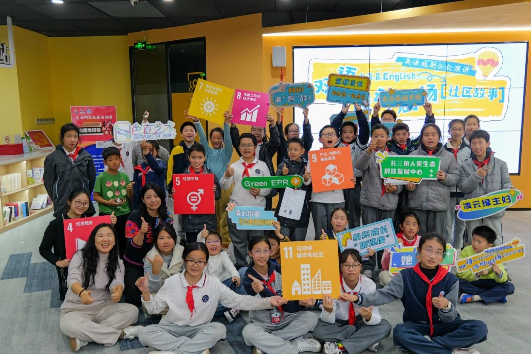 现场秒变“思想碰撞场”。孩子们从历史中汲取灵感,热烈探讨如何以智慧守护自然。活动尾声,他们自信登台,用英语呈现改编剧本,并发出属于自己的“气候行动誓言”——保护动物家园、节约资源、减少塑料使用……每句承诺,都源自戏剧体验带来的真切感悟。