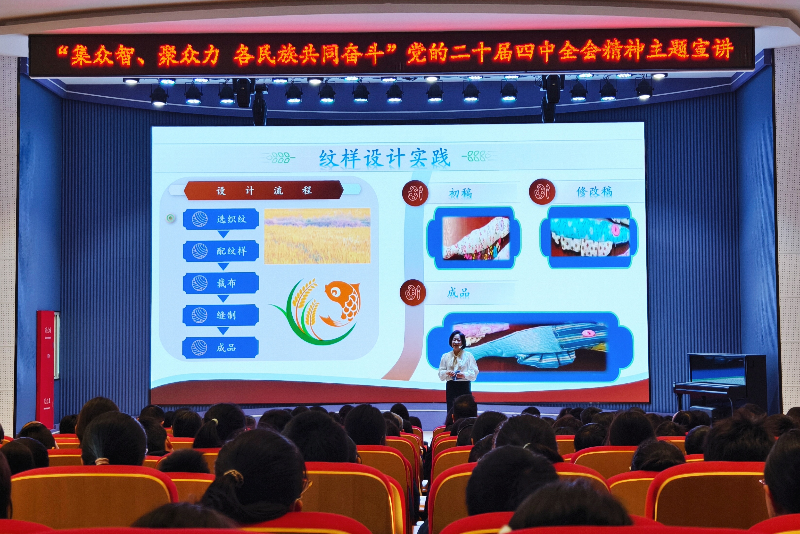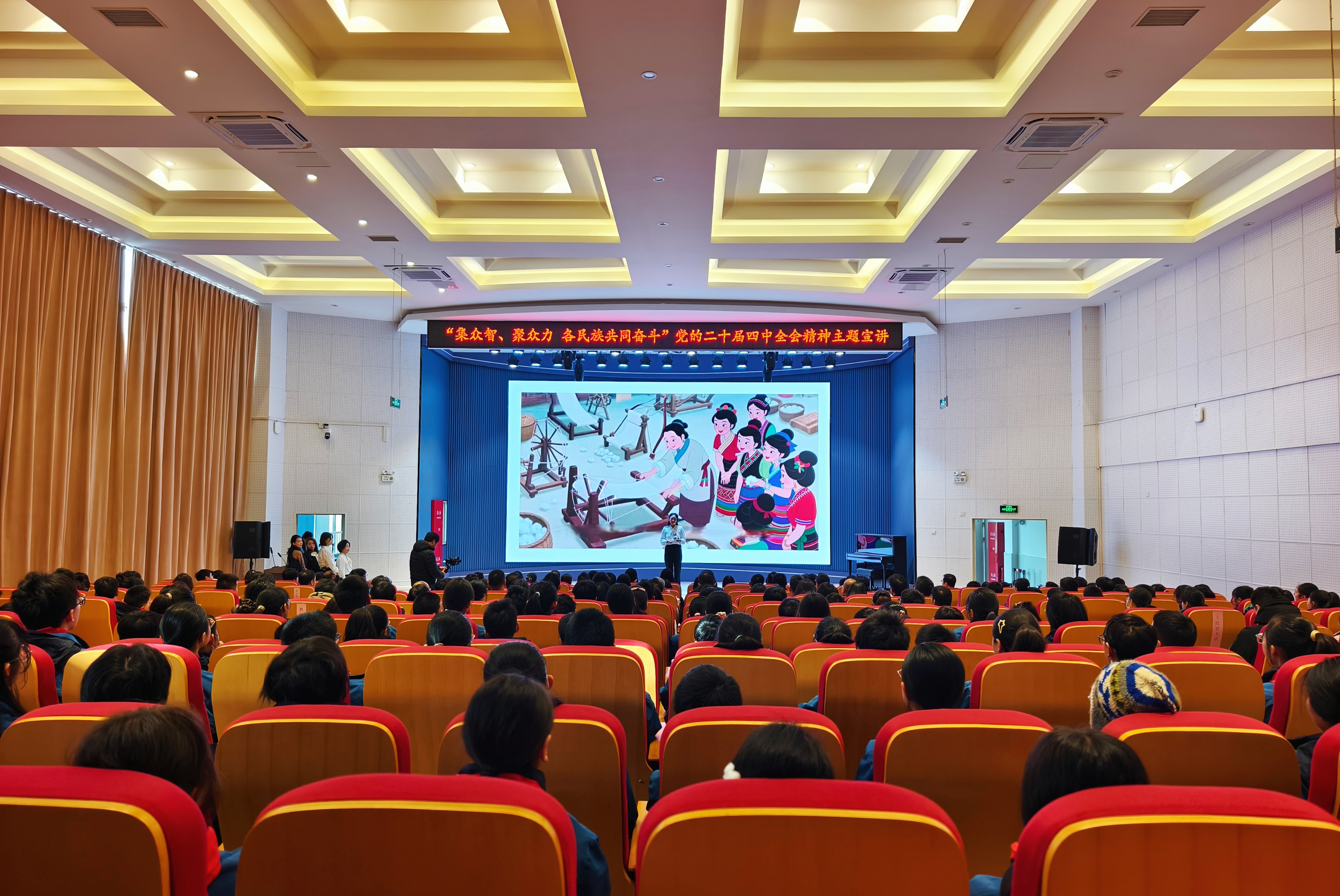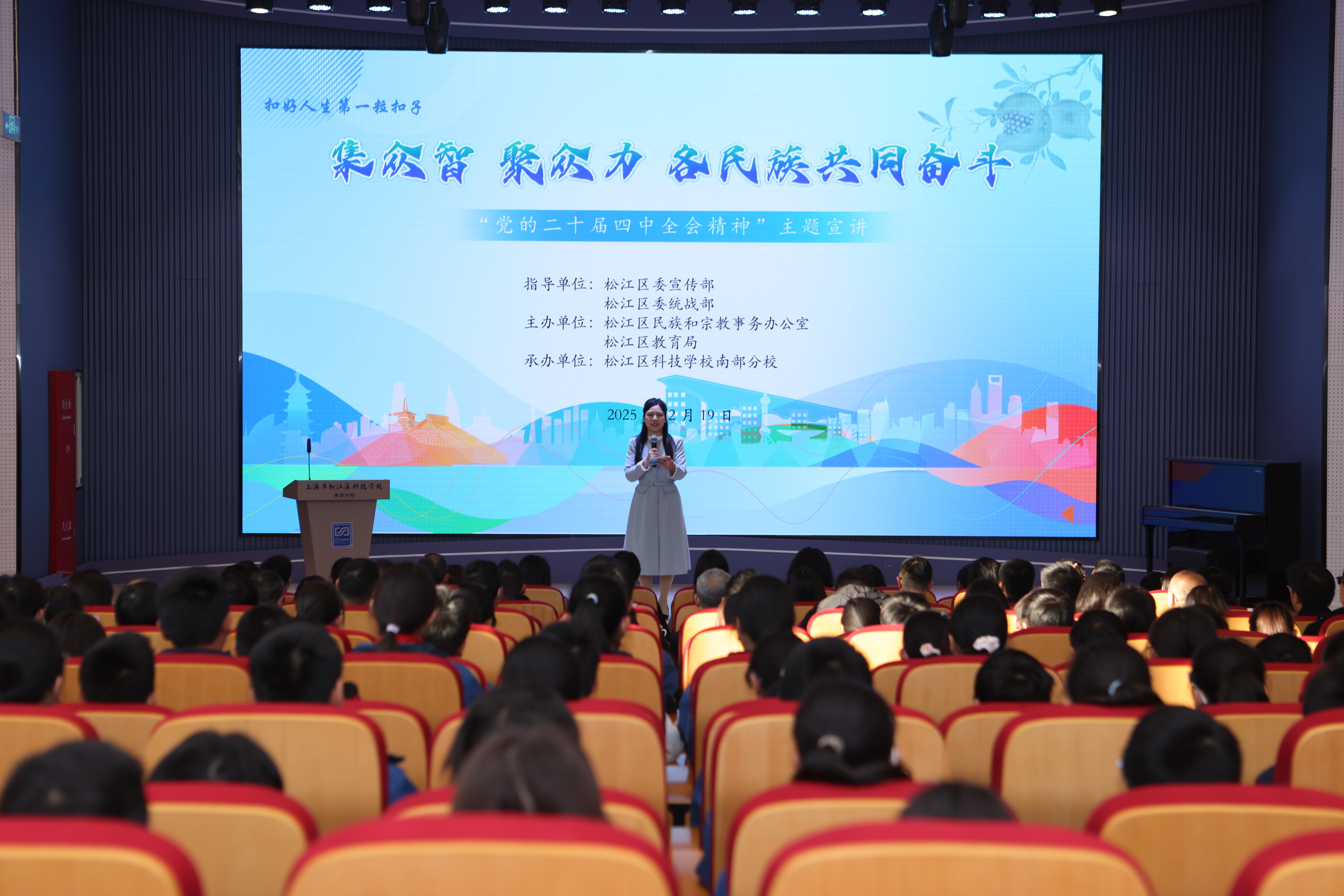 12月19日,由松江区委宣传部、统战部指导,区民宗办、教育局共同主办的“集众智 聚众力 各民族共同奋斗”党的二十届四中全会精神主题宣讲活动在松江区科技学校南部分校举行。