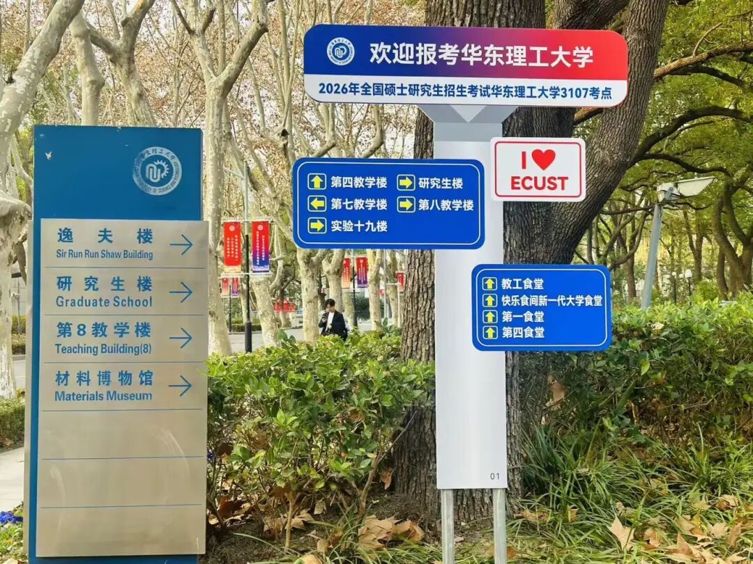 华东理工大学通过设立“研考加油”指引牌、开放考生专门休息区、提供点心热饮等服务,多措并举护航保障研考。