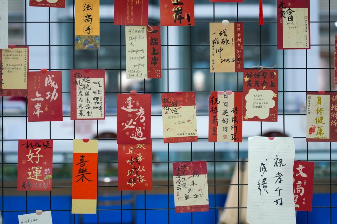 华东政法大学在图书馆内专门设置研考留言板与许愿树,供考生抒发心声、寄托期许。