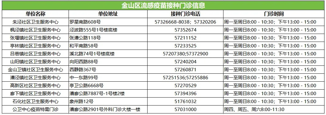 金山区各社区卫生服务中心接种门诊