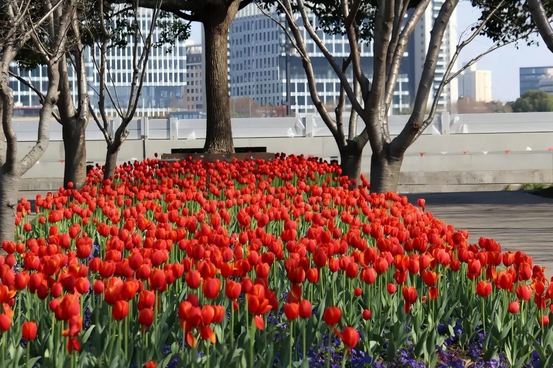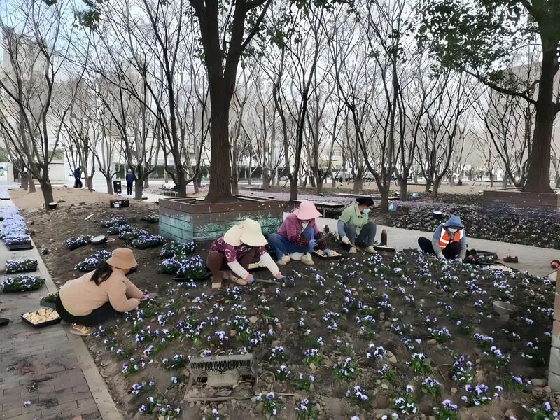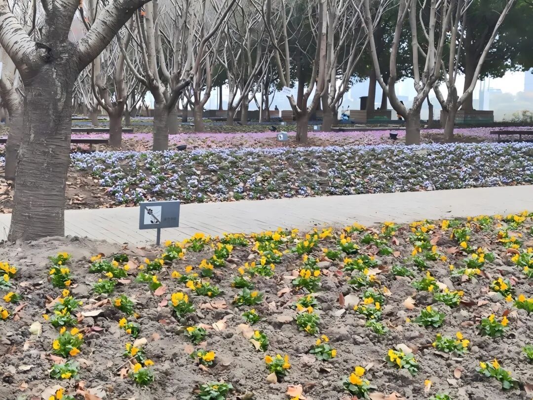 滨江琴键春园的花事则藏着双重惊喜。养护人员巧思布局,将绚烂的角堇与怀揣希望的郁金香种球相伴种植。当下,角堇以热烈的绽放点缀城区;待来年春日,郁金香便会循着暖意苏醒,铺就一片浪漫花海,让冬与春在此完成诗意交接。