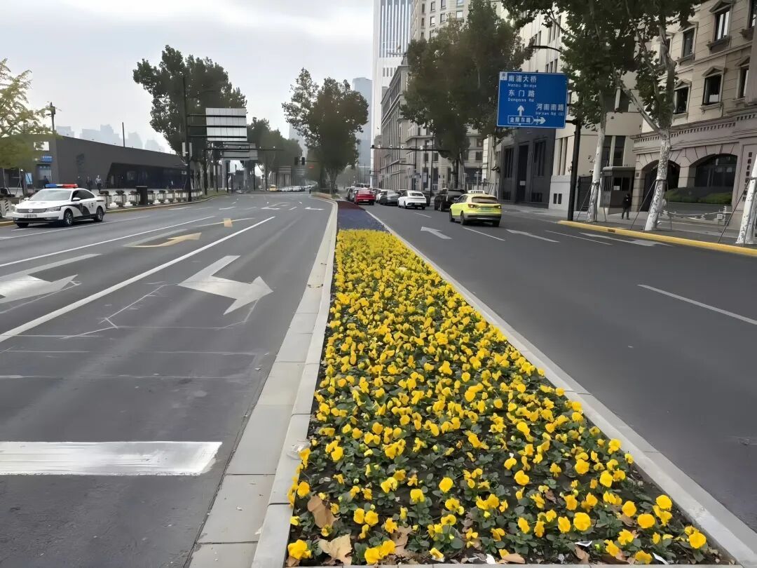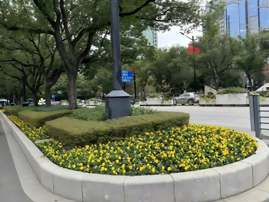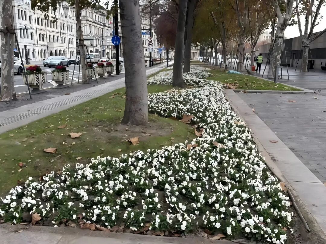 人民广场的绿化带中,各色角堇是冬日的先遣使者。它们在寒风中肆意舒展花瓣,层层叠叠的花影将广场装点得生机盎然。漫步其间,仿佛踏入打翻了的调色盘,每一步都能邂逅灵动色彩,驱散了寒风中的萧瑟与沉寂。