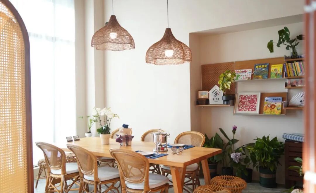 万禾小羊农场餐厅毗邻白山羊扩繁中心,步入其中,温馨雅致的空间里处处流淌着崇明韵味,更妙的是,从装饰到用品,你喜欢的物品几乎都能扫码带回家。餐厅门前还贴心开辟了一片时令菜园,将“从农场到餐桌”的新鲜与品质直观呈现在你眼前。