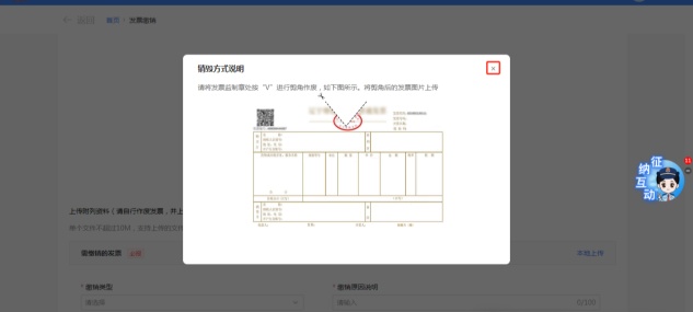 三、若申请缴销的发票为非电子发票(即普通纸票、数电纸票),根据‘销毁方式说明’对需缴销发票进行剪角处理,完成后请拍照上传。若申请缴销的发票为电子发票(即纸电发票)则无需上传附件。
