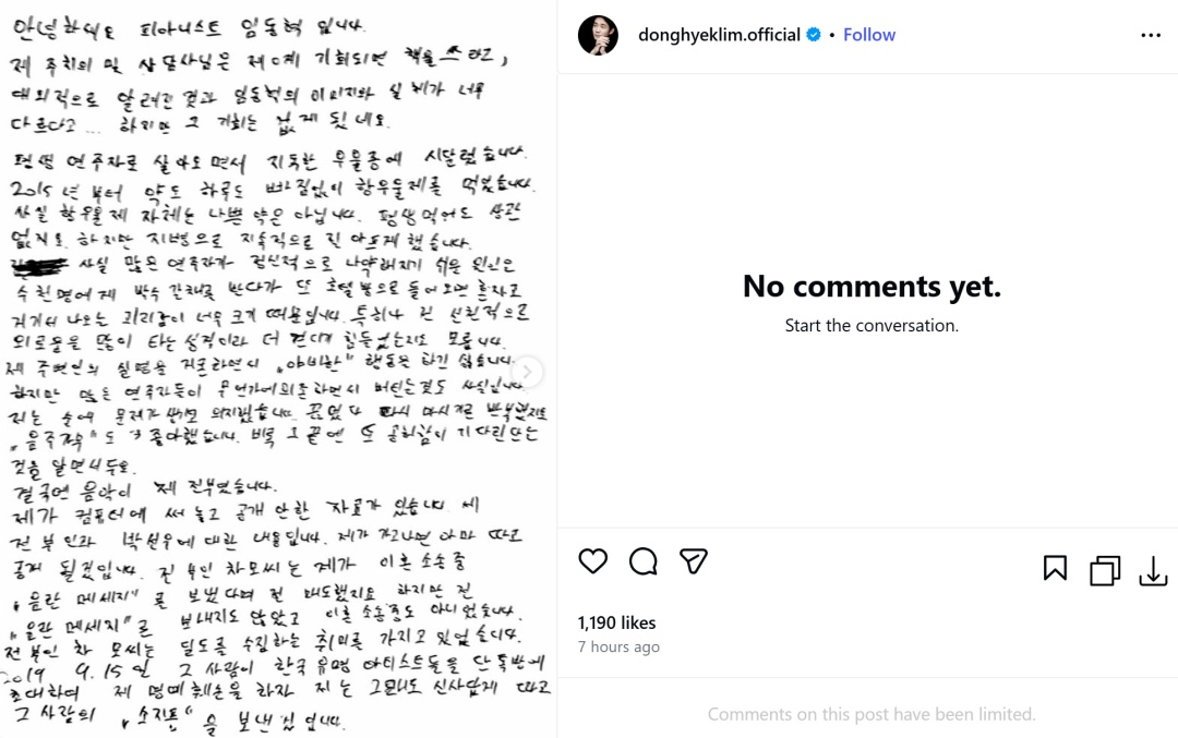 据悉,事发当天林东赫在社交媒体发布了手写信照片,信中坦言自己长期与严重抑郁症斗争,并表达了对粉丝的感谢,此举引发了外界关切。